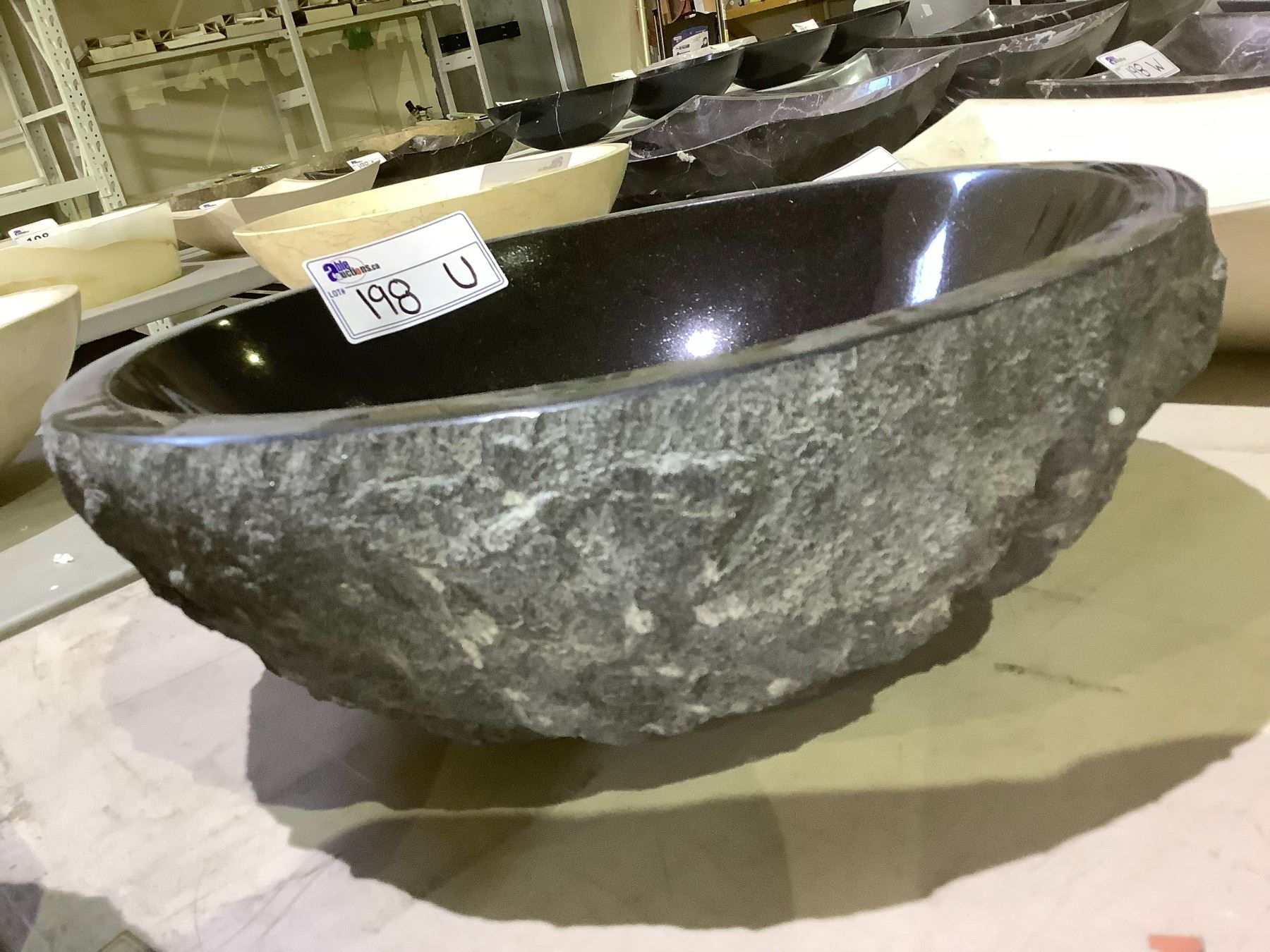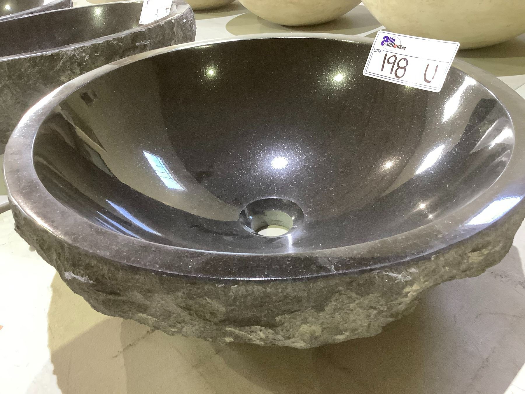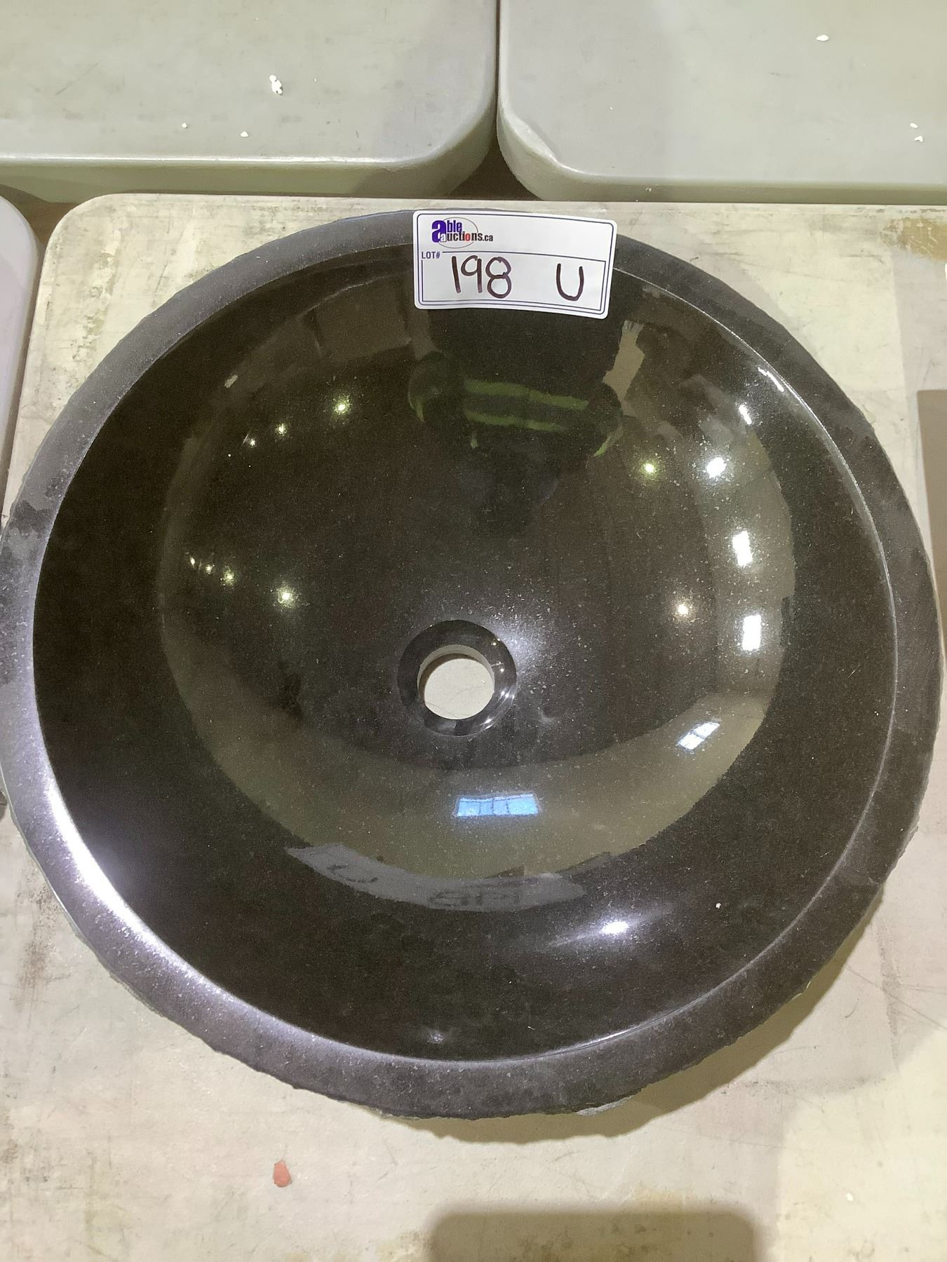 NATURAL STONE ABSOLUTE BLACK OUTSIDE ART ROUND VESSEL SINK 17X6