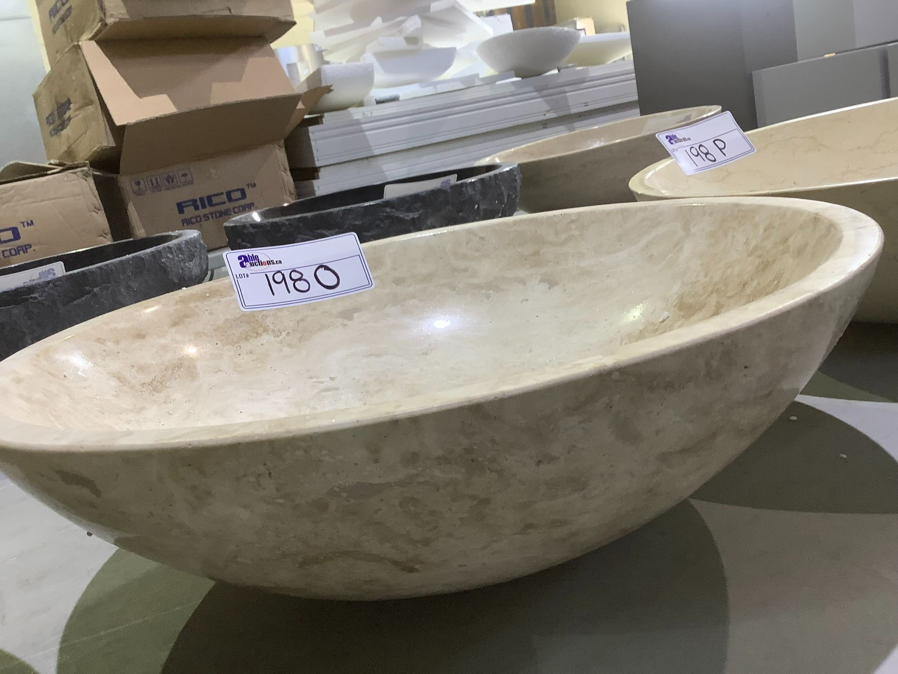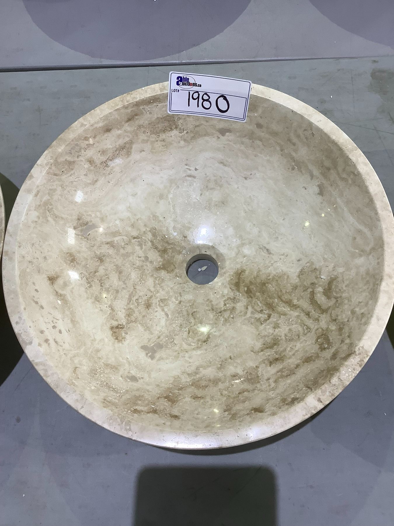 NATURAL STONE MARBLE ROUND VESSEL SINK 17X5-1/4"