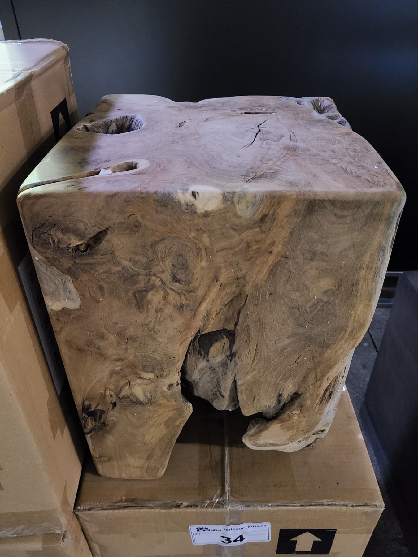 NATURAL TEAK WOOD END TABLE APPROX. W 18" L 15" H 15"