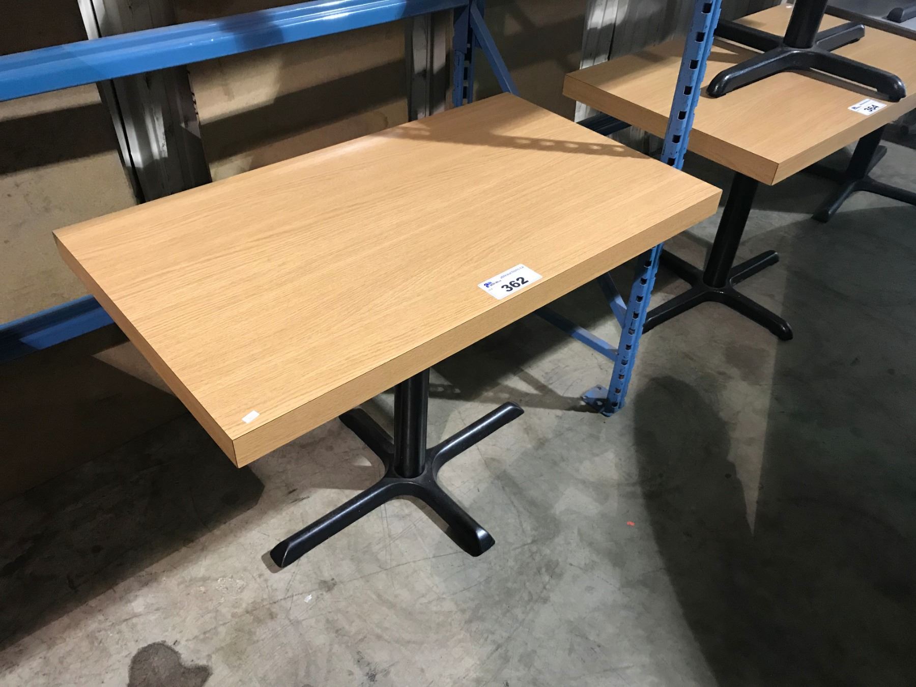 NATURAL WOOD 24" X 42" BLACK METAL BASE RESTAURANT TABLE