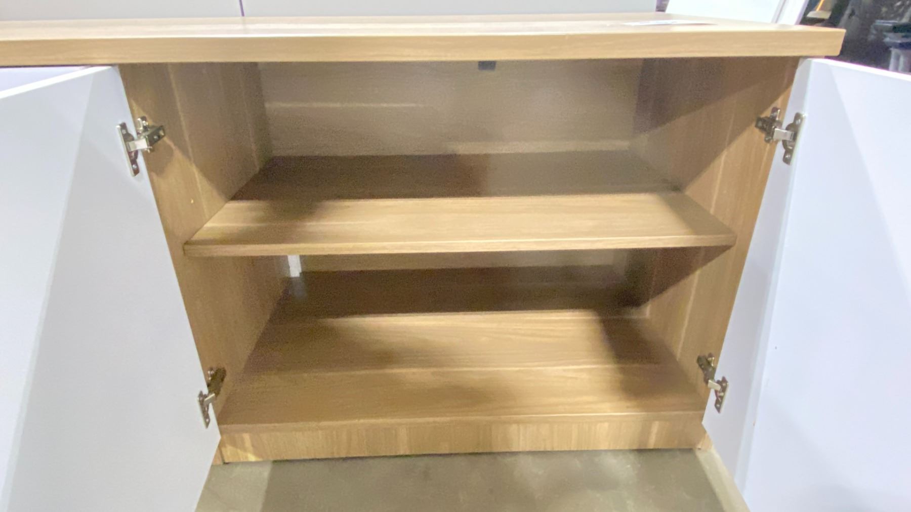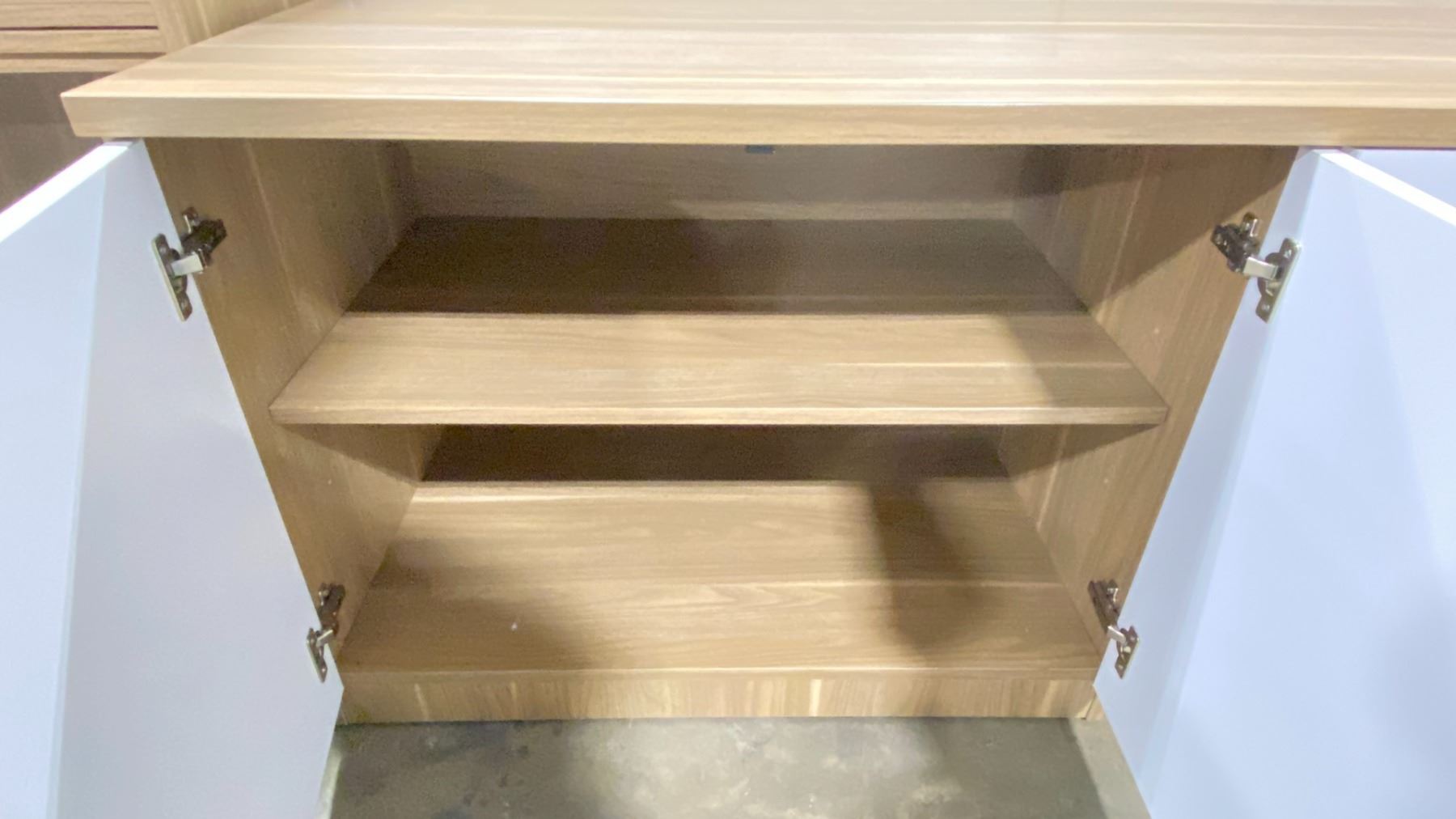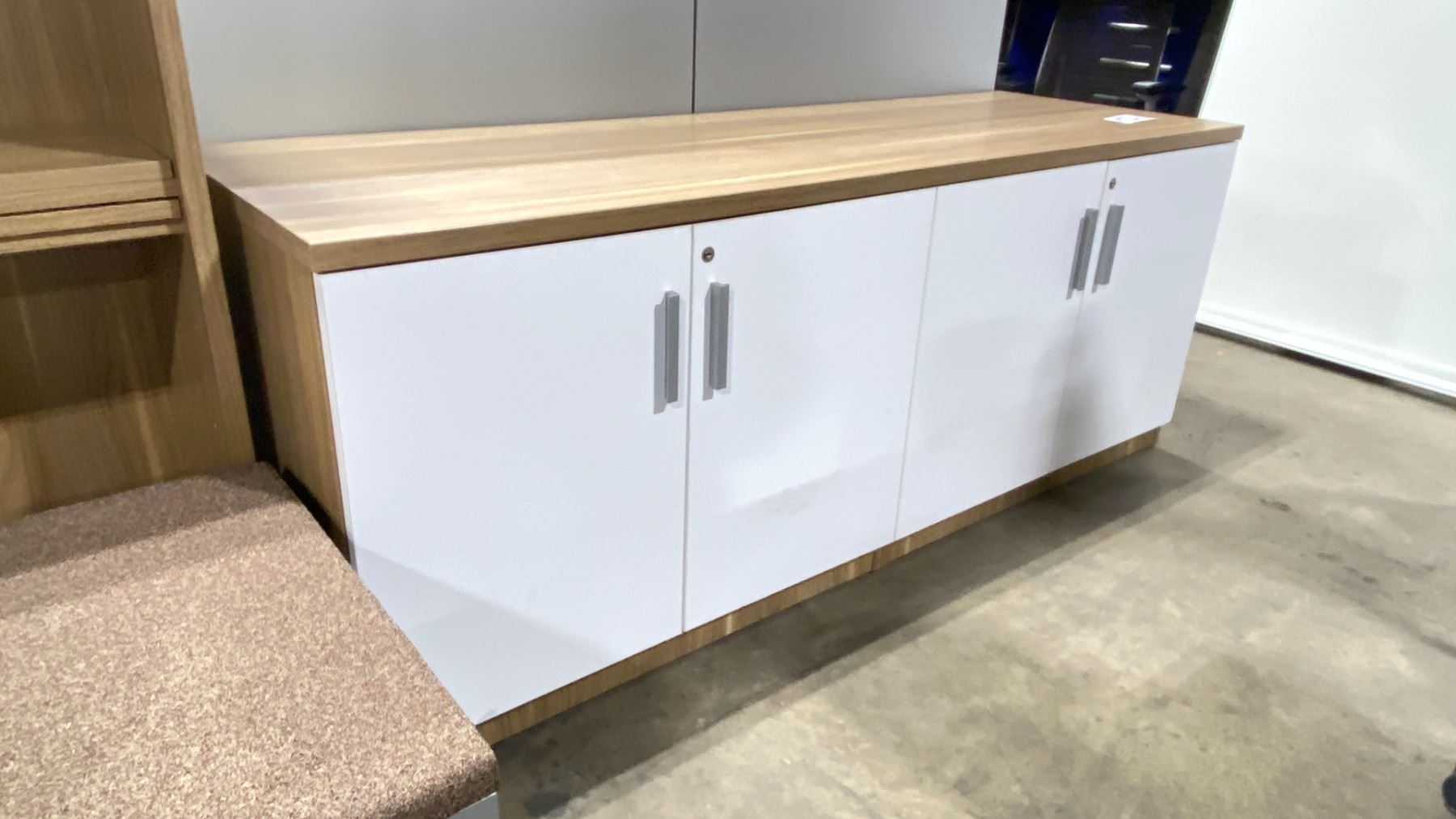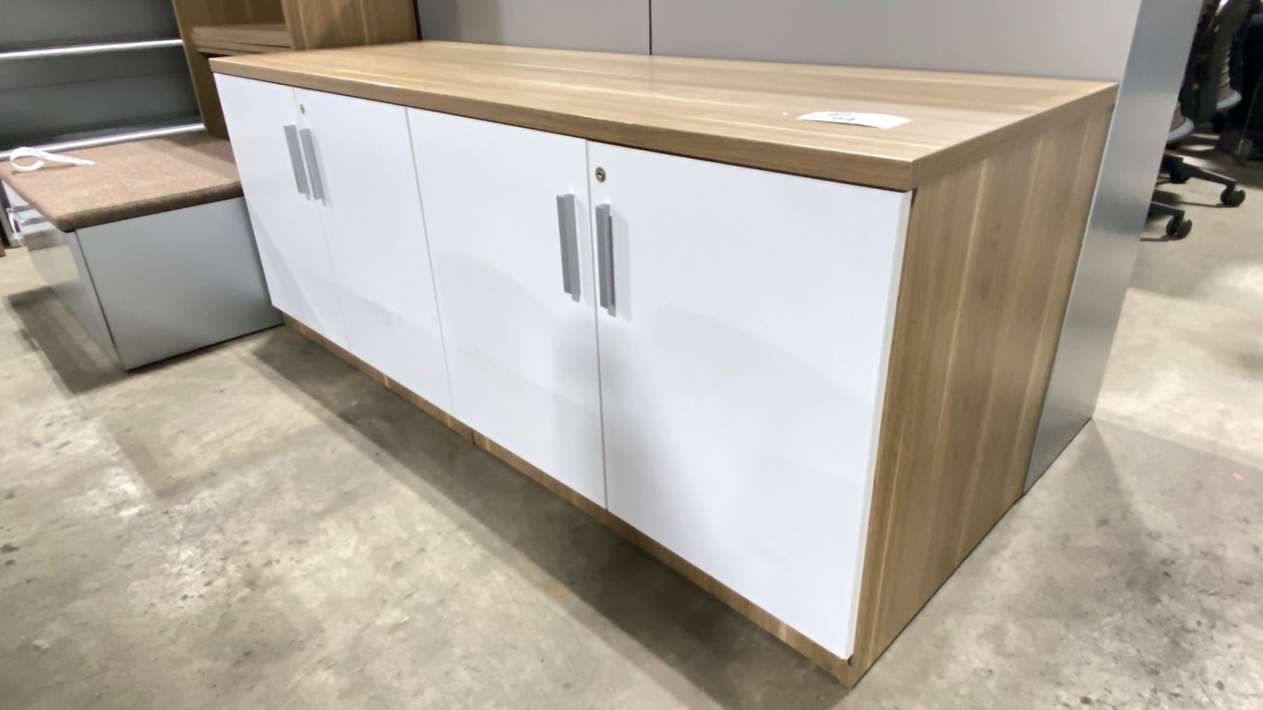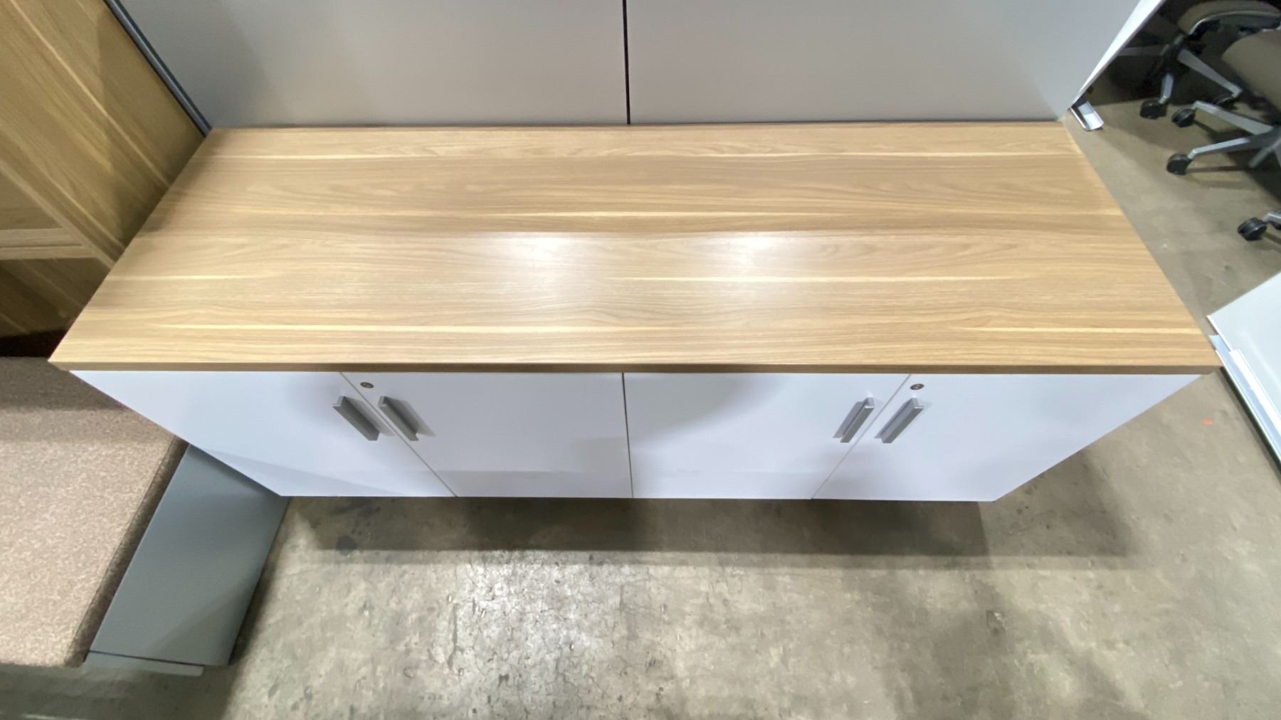 NATURAL WOOD LOOK / WHITE 4 DOOR 72"W X 24"D X 28 1/2"H STORAGE CREDENZA