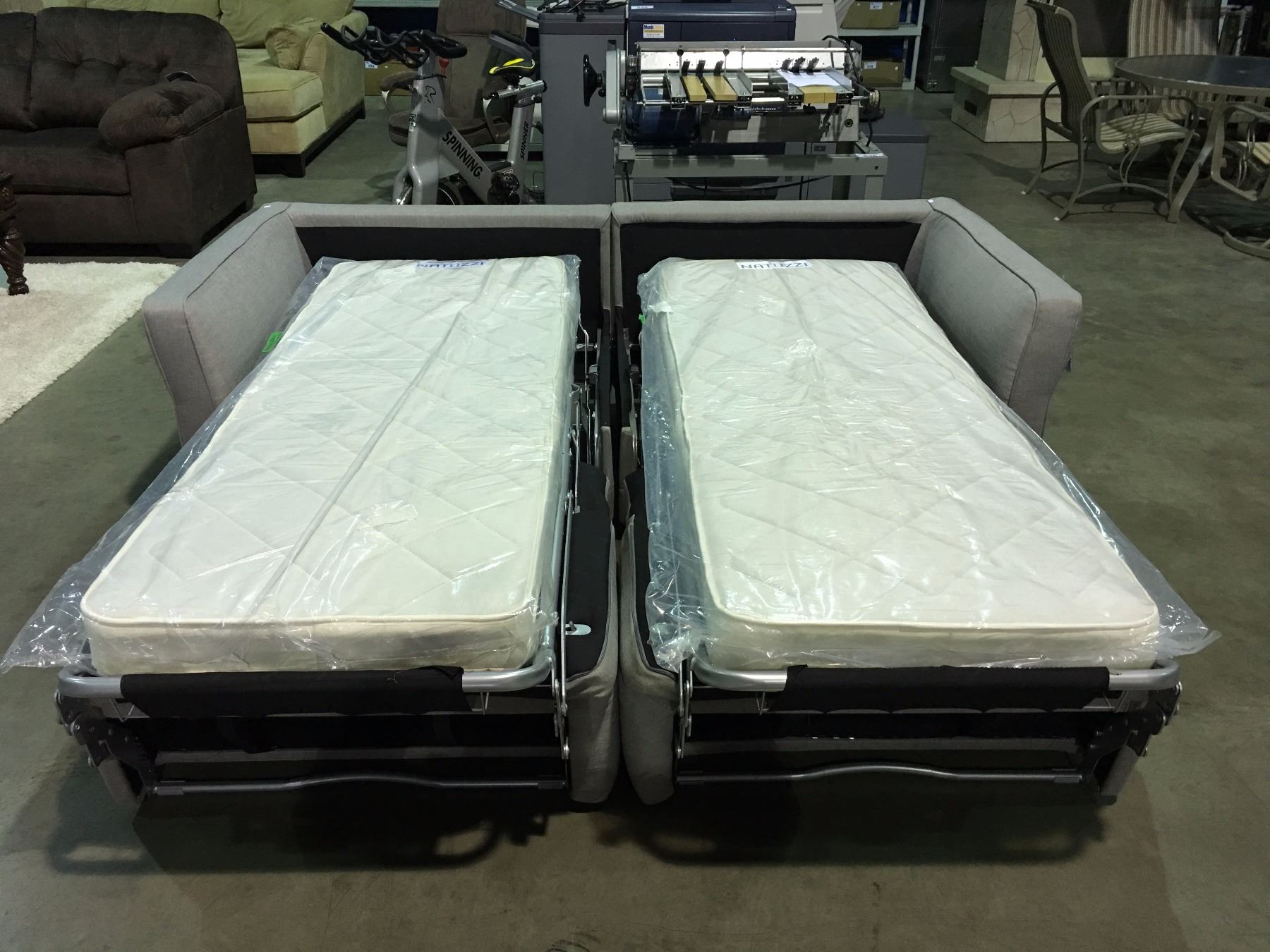 NATUZZI GREY UPHOLSTERED DOUBLE SUPER SINGLE SLEEPER CONVERTIBLE SOFA