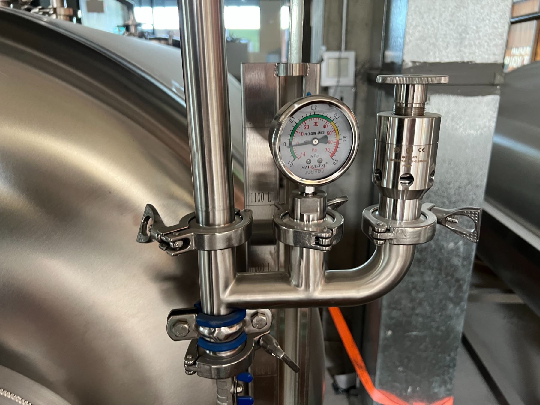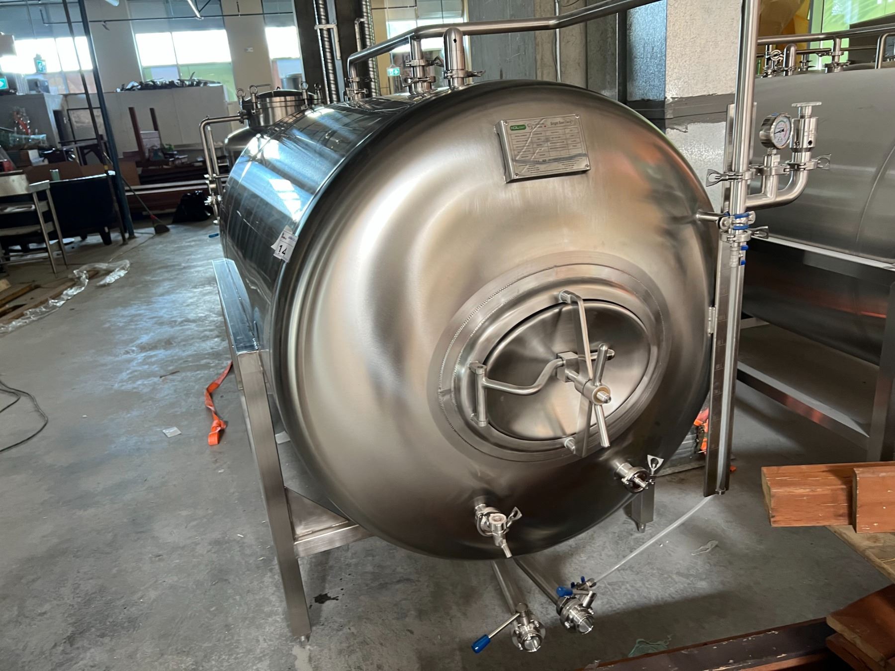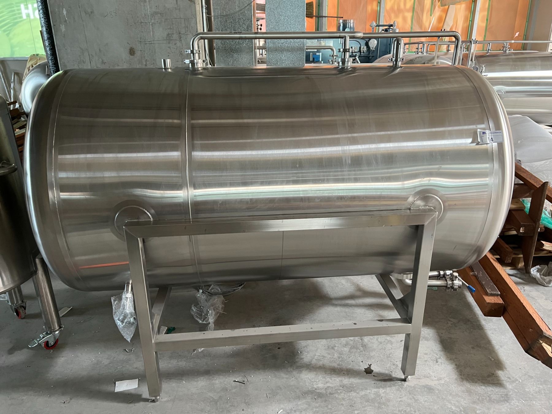 NDL CRAFT 10 HECTOLITER (1256 L) HORIZONTAL BRIGHT BEER TANK. WITH THERMAL PROBE, JACKETED-INSULATION. PRV, CIP BALLS & SAMPLE VALVE. CARB STONE, ROCKING ARM, SIGHT GAUGE, PRESSURE GAUGE, BUNGE DEVICE. OVERALL 92" LONG X 4' WIDE X 62" HIGH