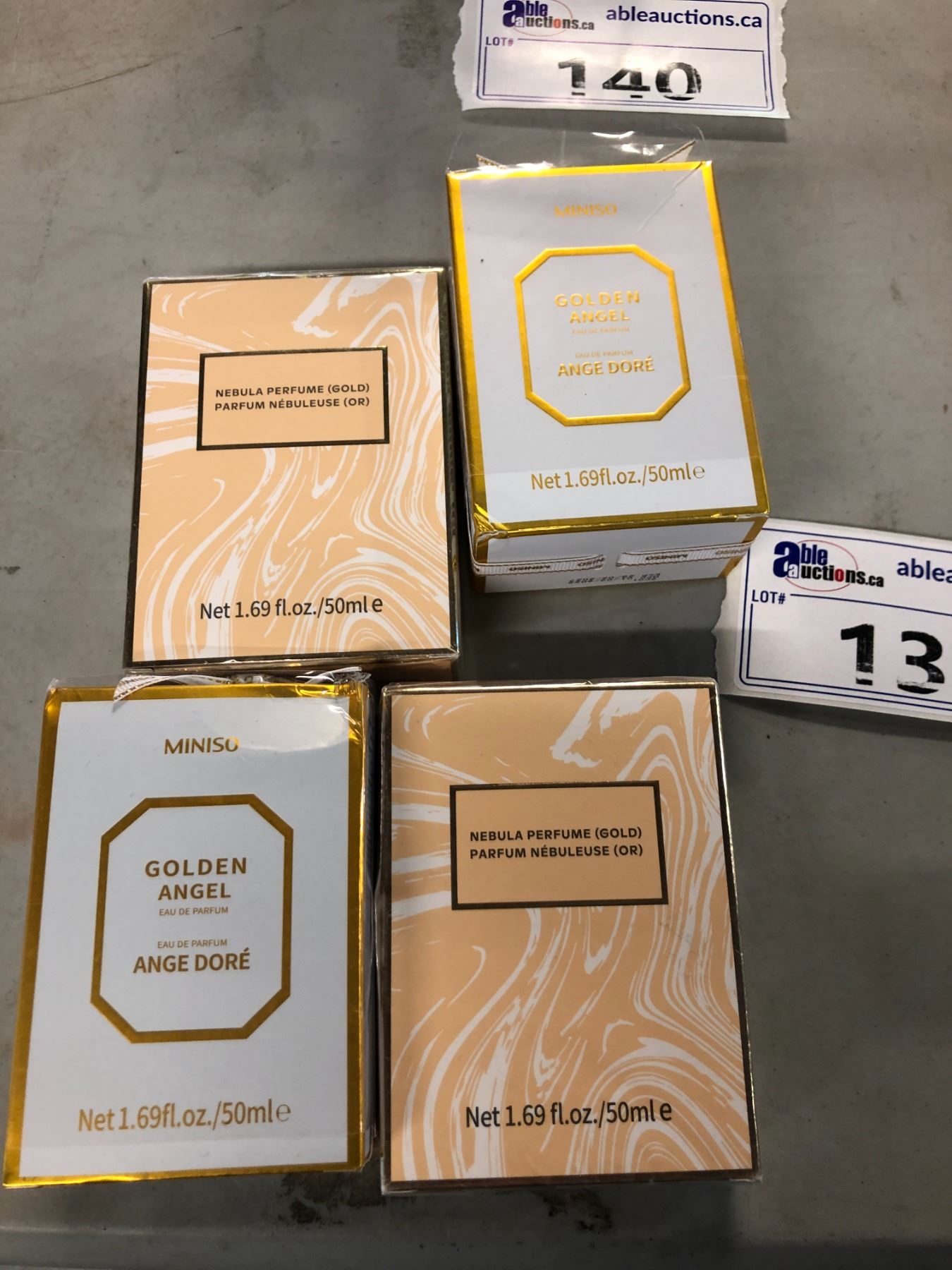 NEBULA GOLD PERFUMES 1.69 OZ AND 2 MINISO GOLDEN ANGEL EAU DE PERFUMES