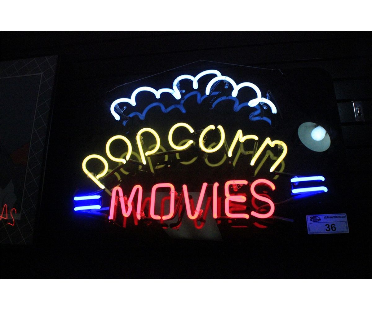 NEON POPCORN / MOVIES LIGHT UP SIGN