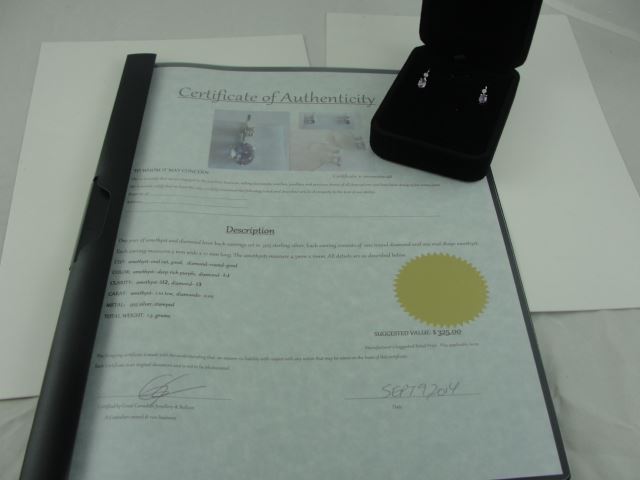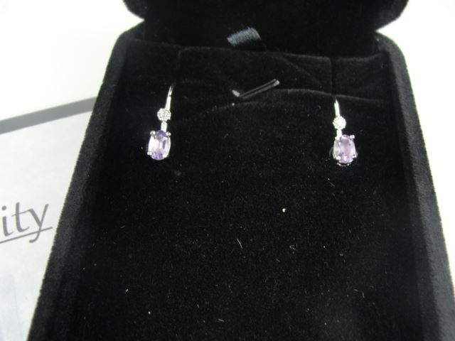 NEW 1.10CT OVAL AMETHYST AND DIAMOND LEVER BACK EARRINGS, STERLING SILVER INCLUDES $325 CERTIFICATE