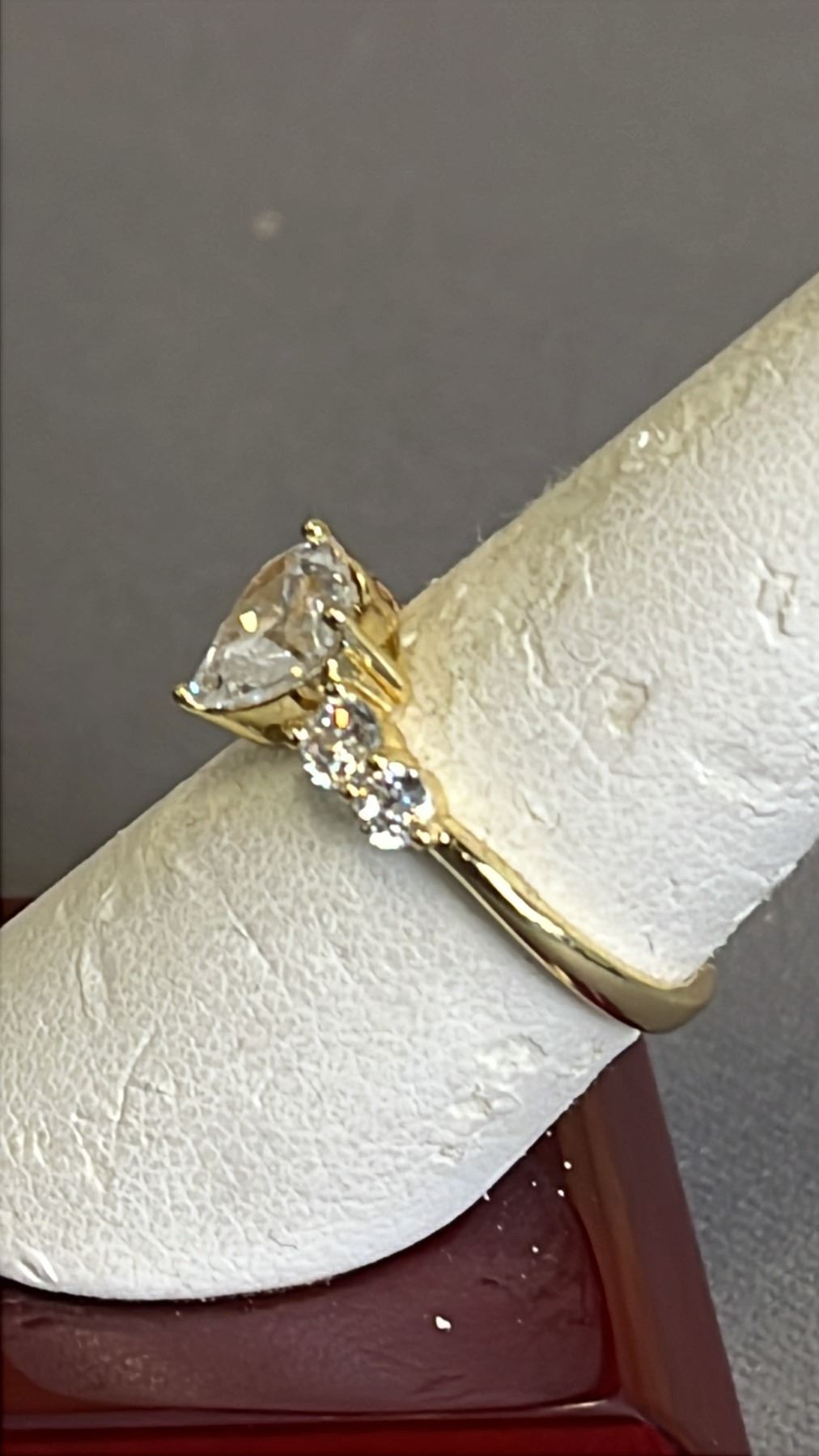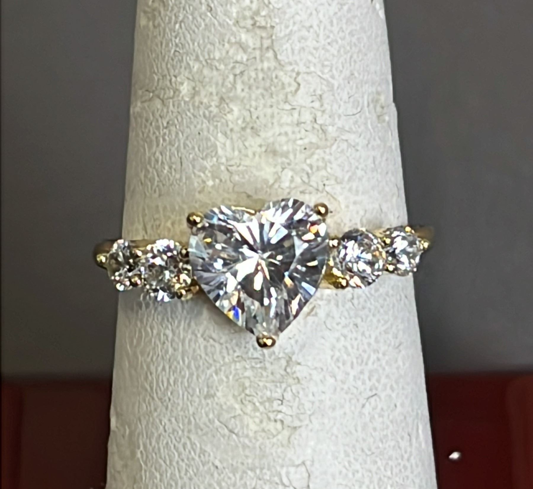 *NEW* 14K GOLD PLATED 2CT HEART CUT SIMULATED DIAMOND (CZ) 5 STONE RING: SIZE 8