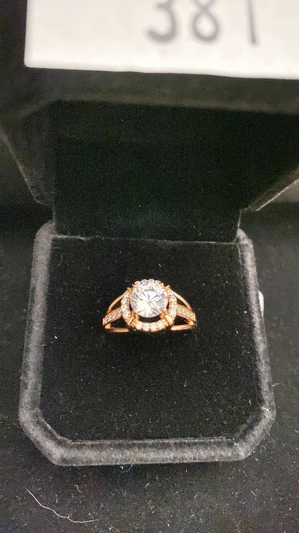 NEW 18K GOLD PLATED 1.0CT SIMULATED DIAMOND HALO CHANEL RING, SIZE 7.0