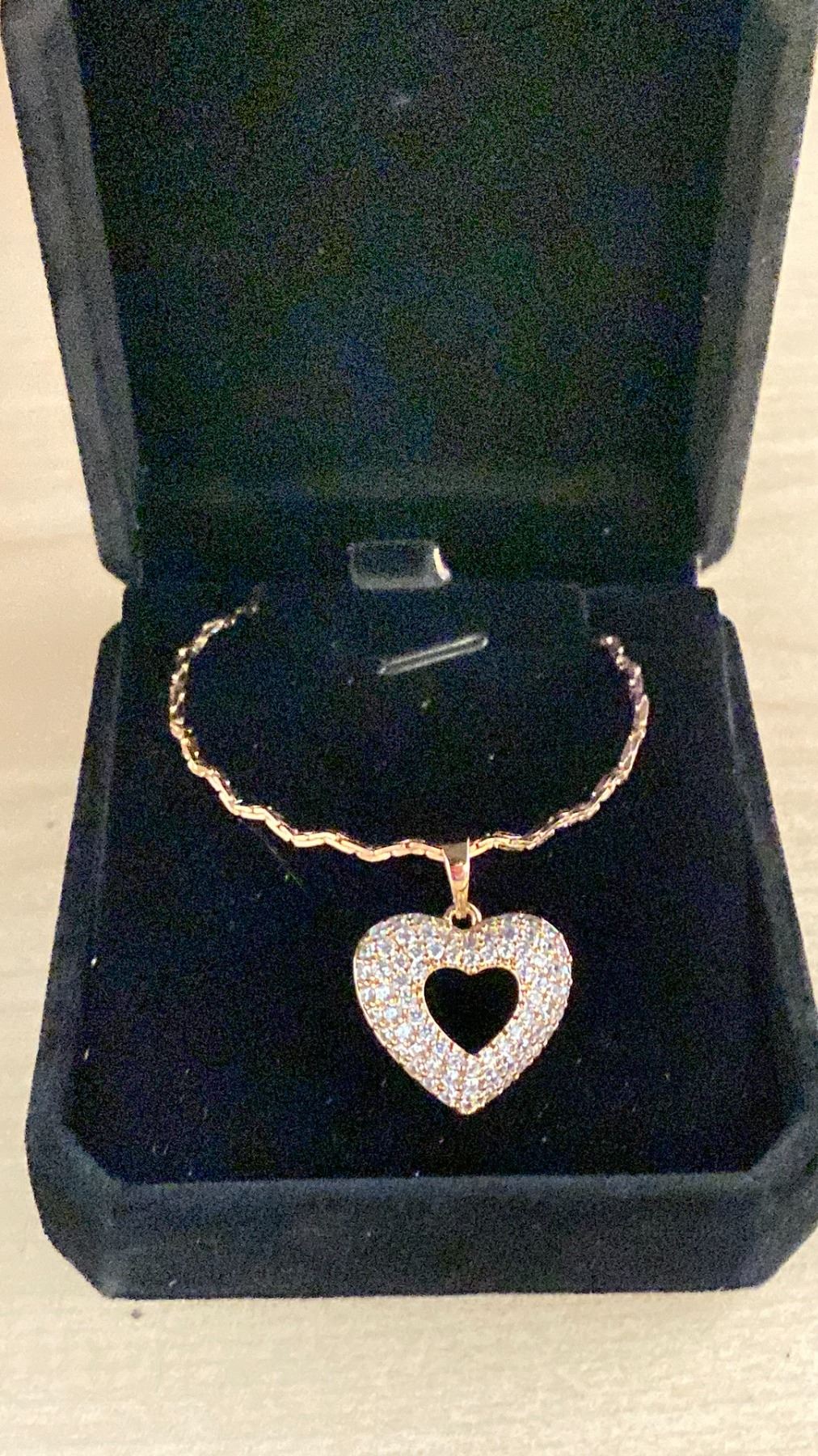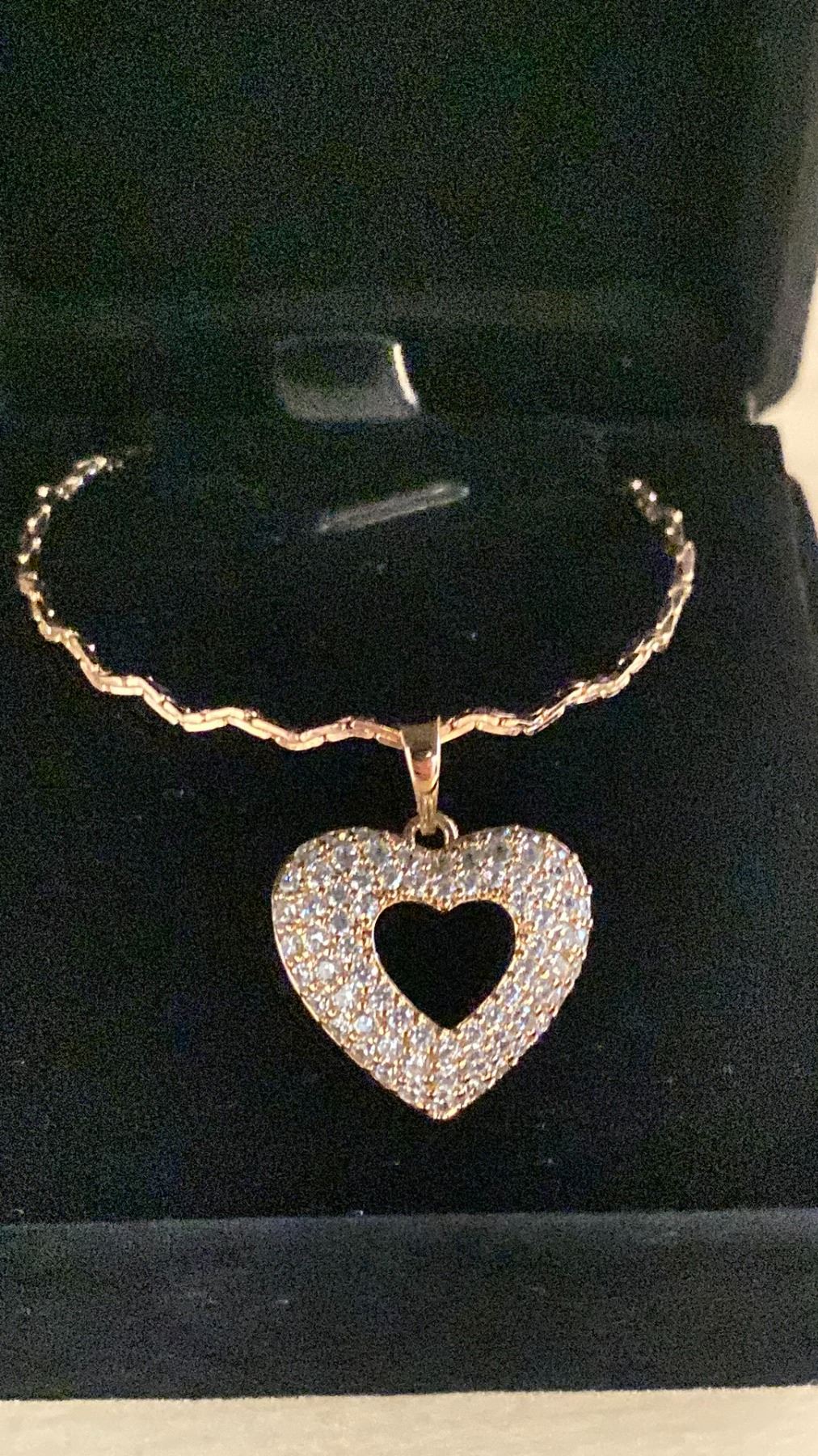 NEW 18K GOLD PLATED 20.0MM SIMULATED DIAMOND (CZ) HEART NECKLACE, CHAIN 17" LONG
