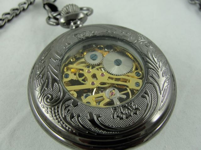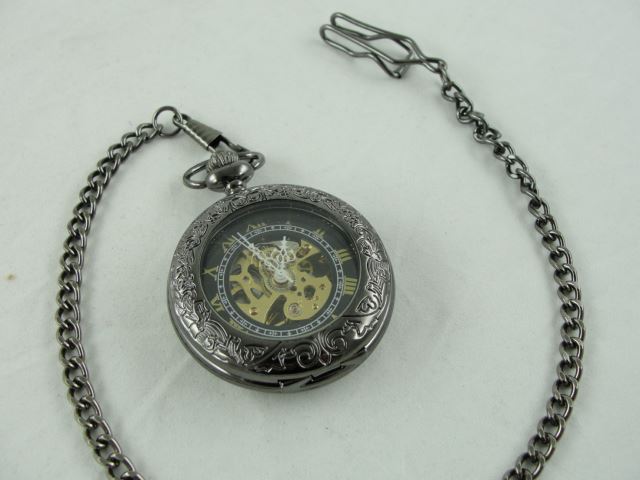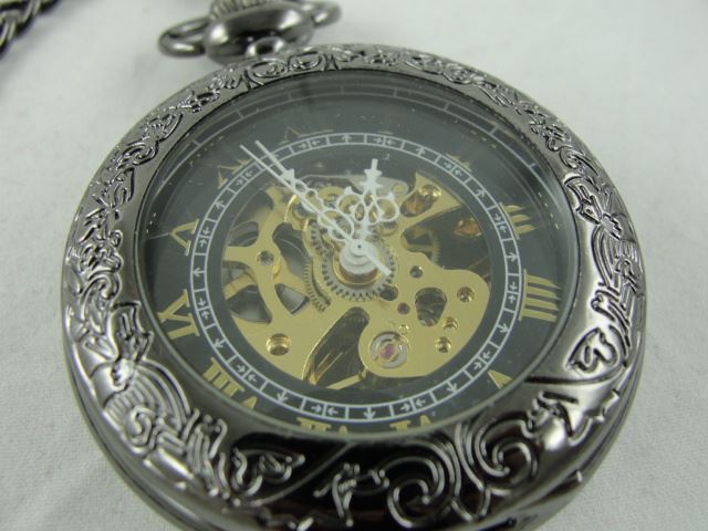 NEW 2 SIDED MECHANICAL SKELETON POCKET WATCH. 2TONES