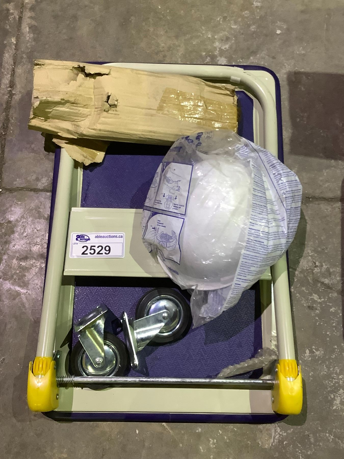 NEW 4 WHEEL DOLLY AND HARDHAT