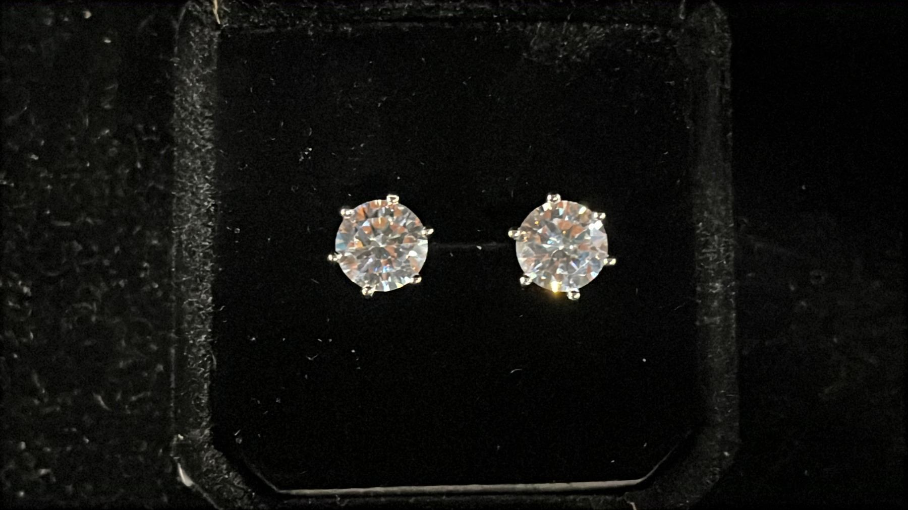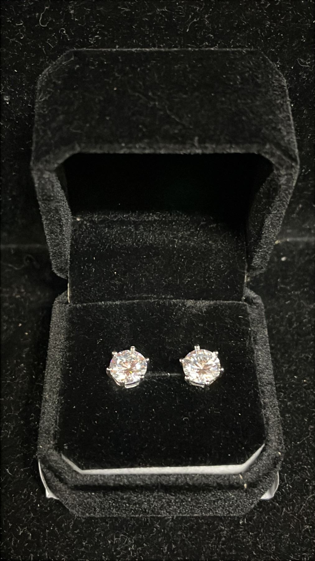 NEW .925 SILVER 2CT EACH SIMULATED DIAMOND (CZ) STUD EARRINGS MOUNTED IN 925 STERLING SILVER WITH WHITE GOLD OVERLAY