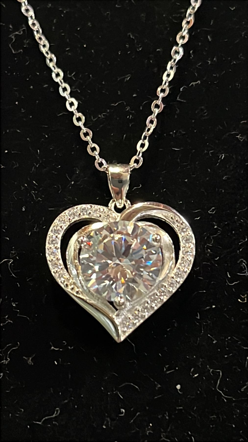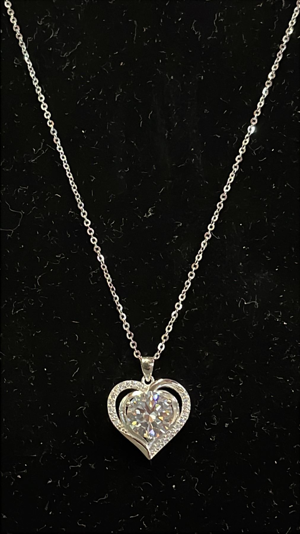 *NEW* .925 SILVER 3CT SIMULATED DIAMOND (CZ) HEART HALO NECKLACE: 16" - 18" LONG