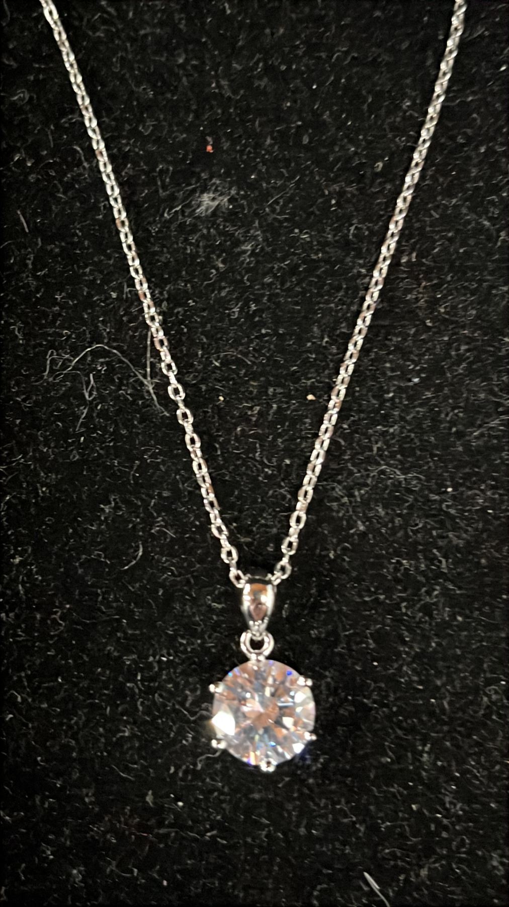 NEW 925 SILVER 3CT SIMULATED DIAMOND (CZ) SOLITAIRE NECKLACE - ADJUSTABLE 16" - 18" LONG