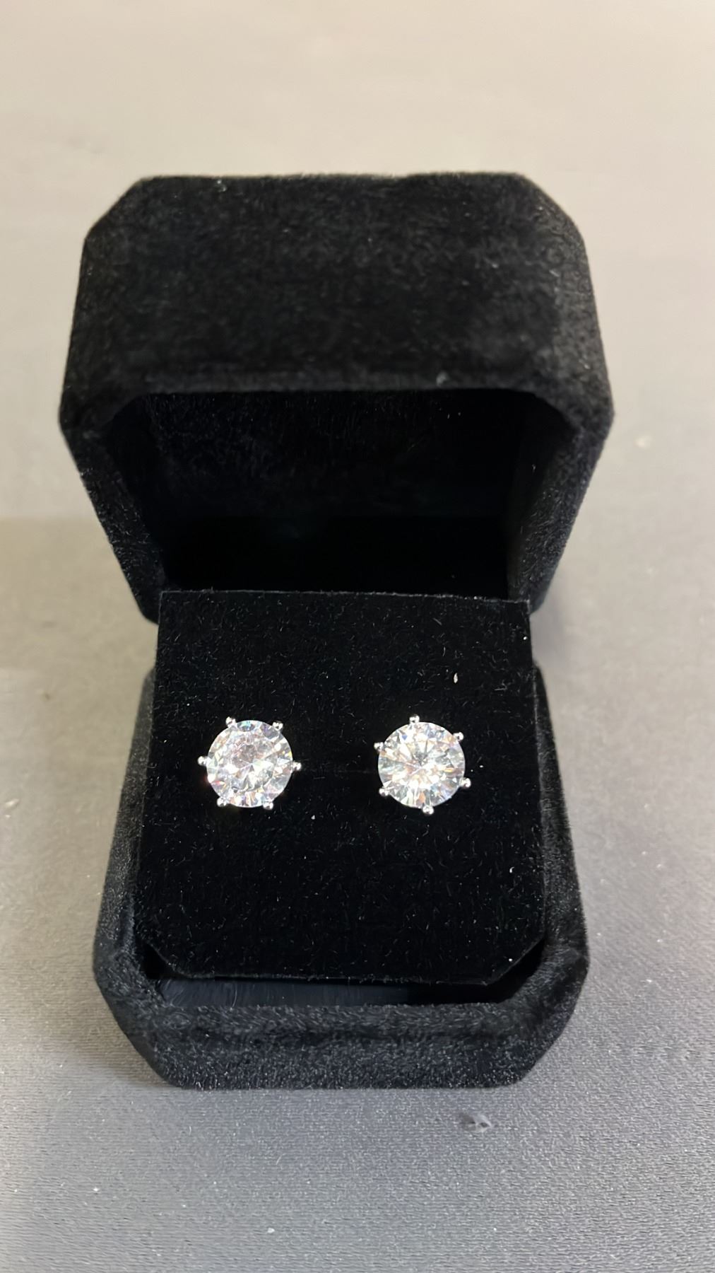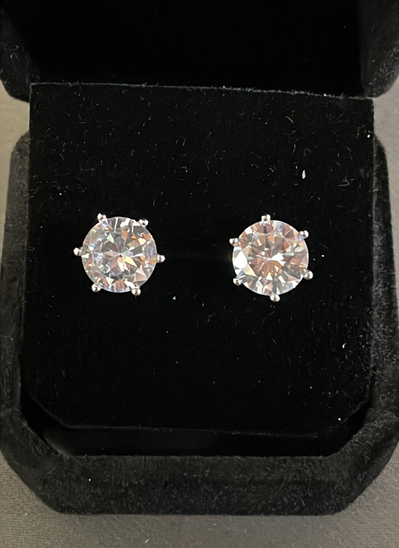 *NEW* .925 SILVER SIMULATED DIAMOND (CZ) STUD EARRINGS: 3CT EACH EARRING MOUNTED IN .925 STERLING SILVER WITH WHITE GOLD OVERLAY