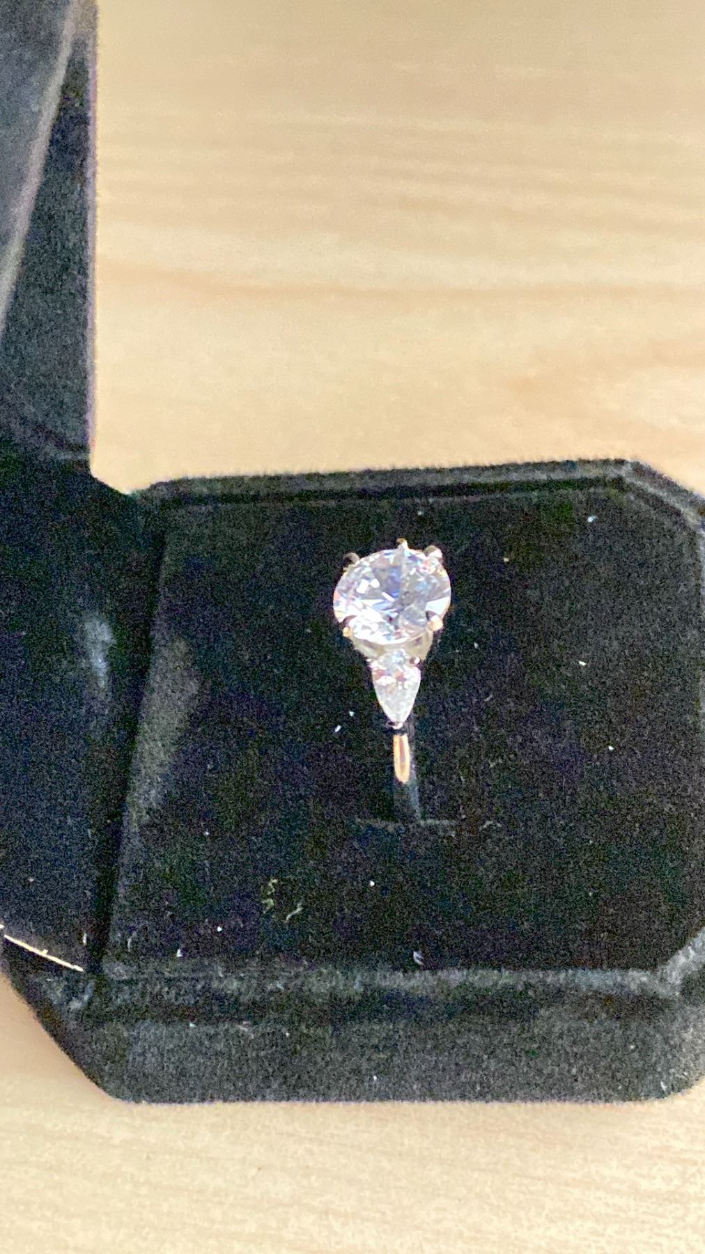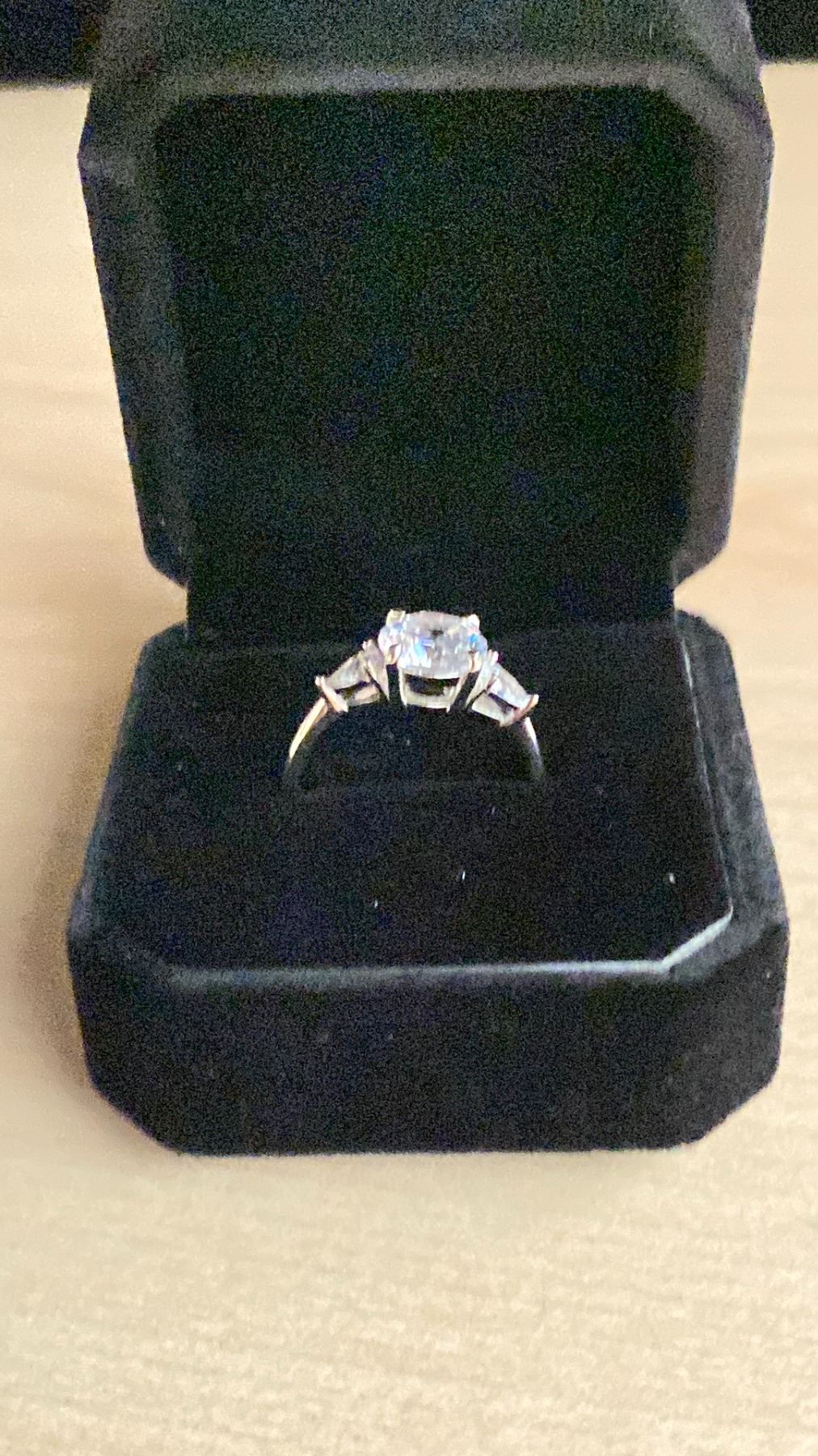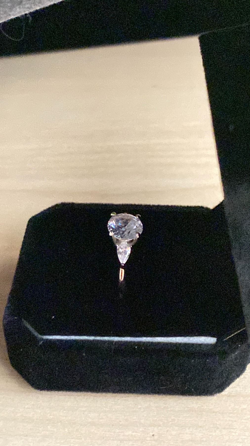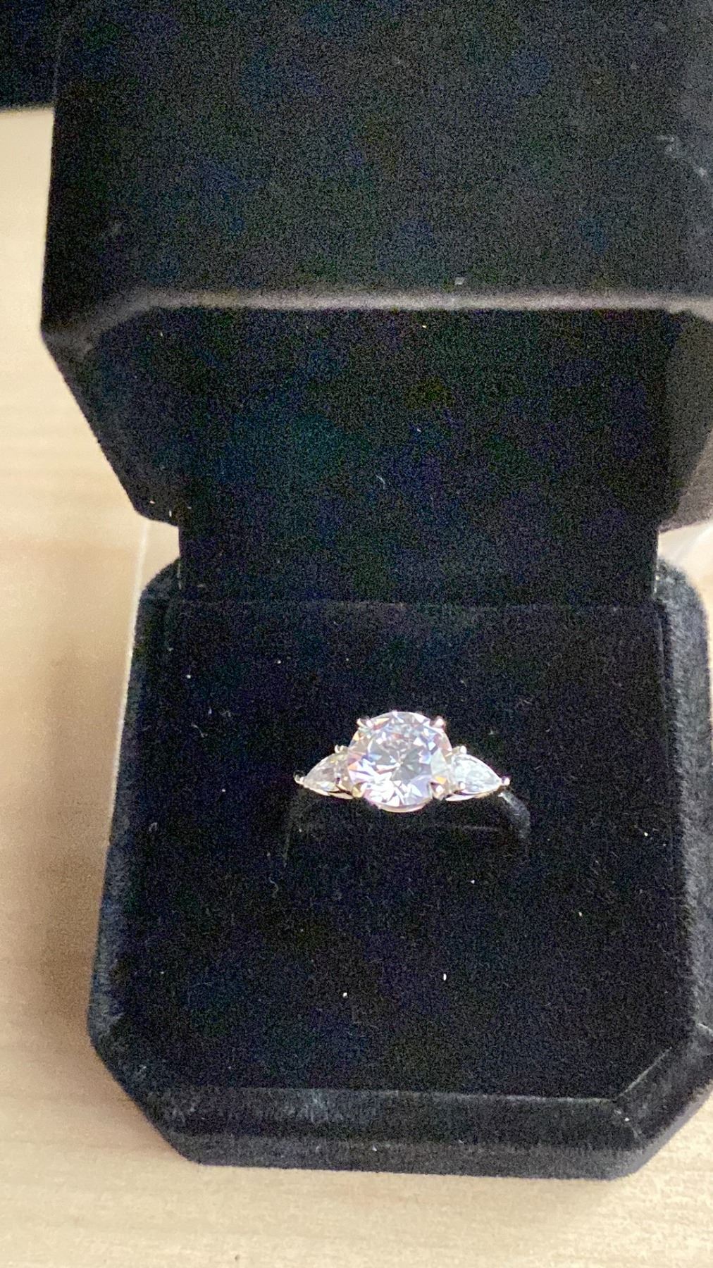 NEW 925S 2.0 SIMULATED DIAMOND (CZ) TRINITY RING WITH PEAR SIDE STONES, SIZE 7.5, MOUNTED IN 925