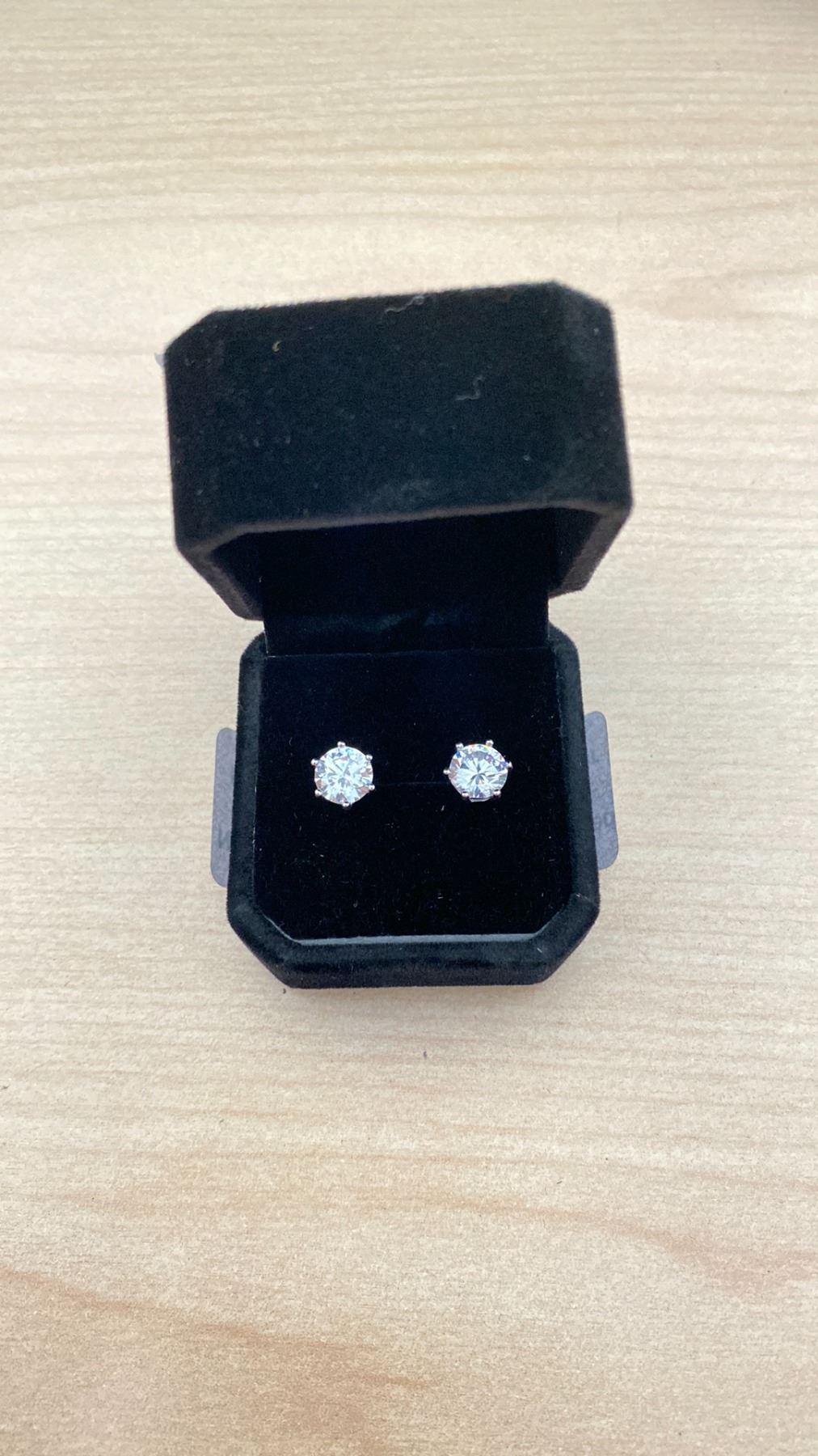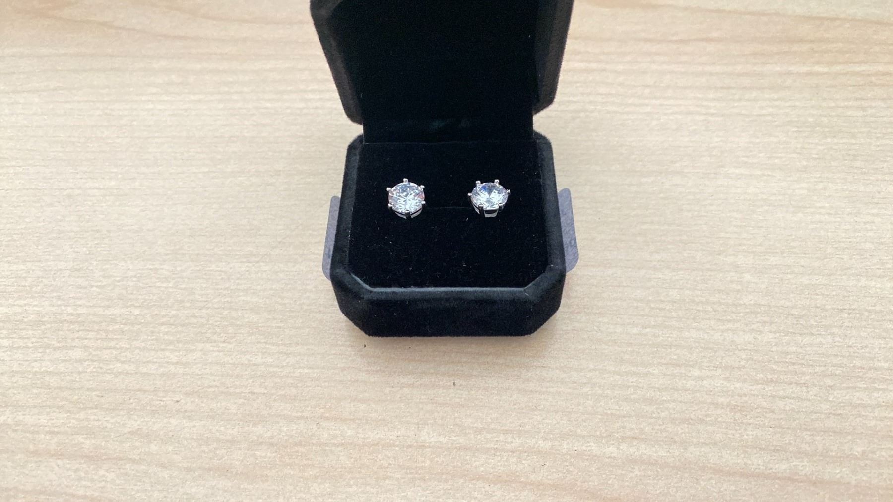 NEW 925S 2.0CT EACH SIMULATED DIAMOND (CZ) STUD EARRINGS, MOUNTED IN 925 STERLING SILVER WITH WHITE GOLD OVERLAY