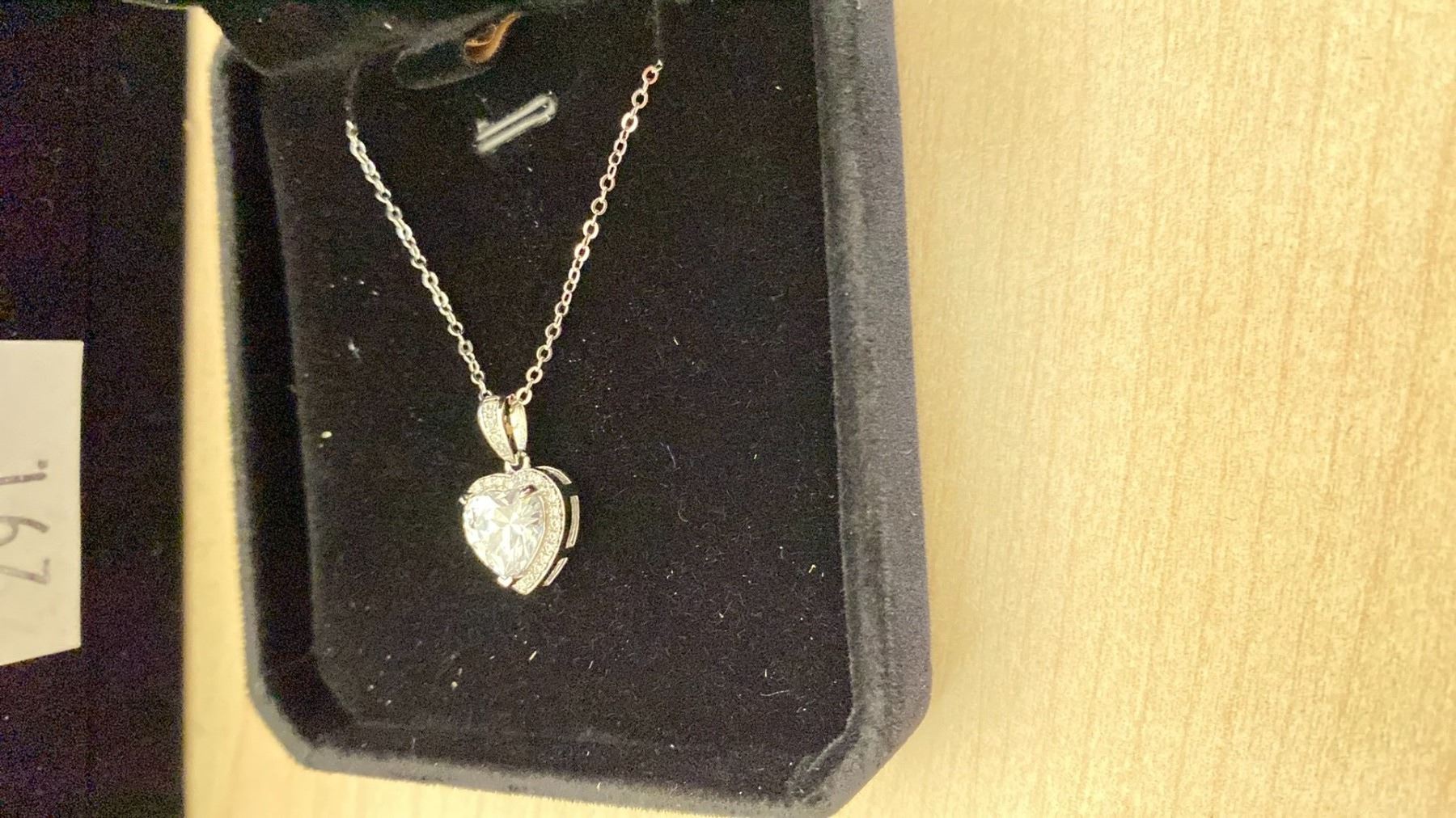 NEW 925S 2.0CT HEART CUT SIMULATED DIAMOND (CZ) HALO NECKLACE, ADJUSTABLE 16" - 18" LONG, MOUNTED IN 925 STERLING SILVER WITH WHITE GOLD OVERLAY