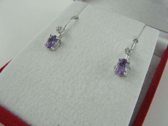 NEW AMETHYST AND DIAMOND LEVER BACK EARRINGS APPROX RETAIL $200