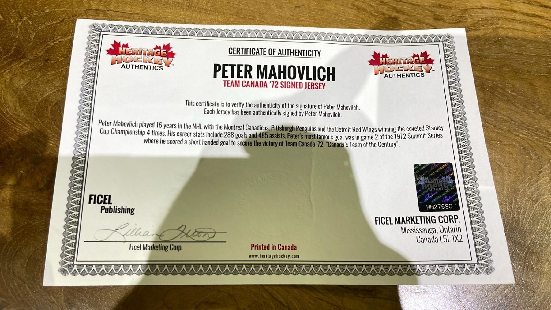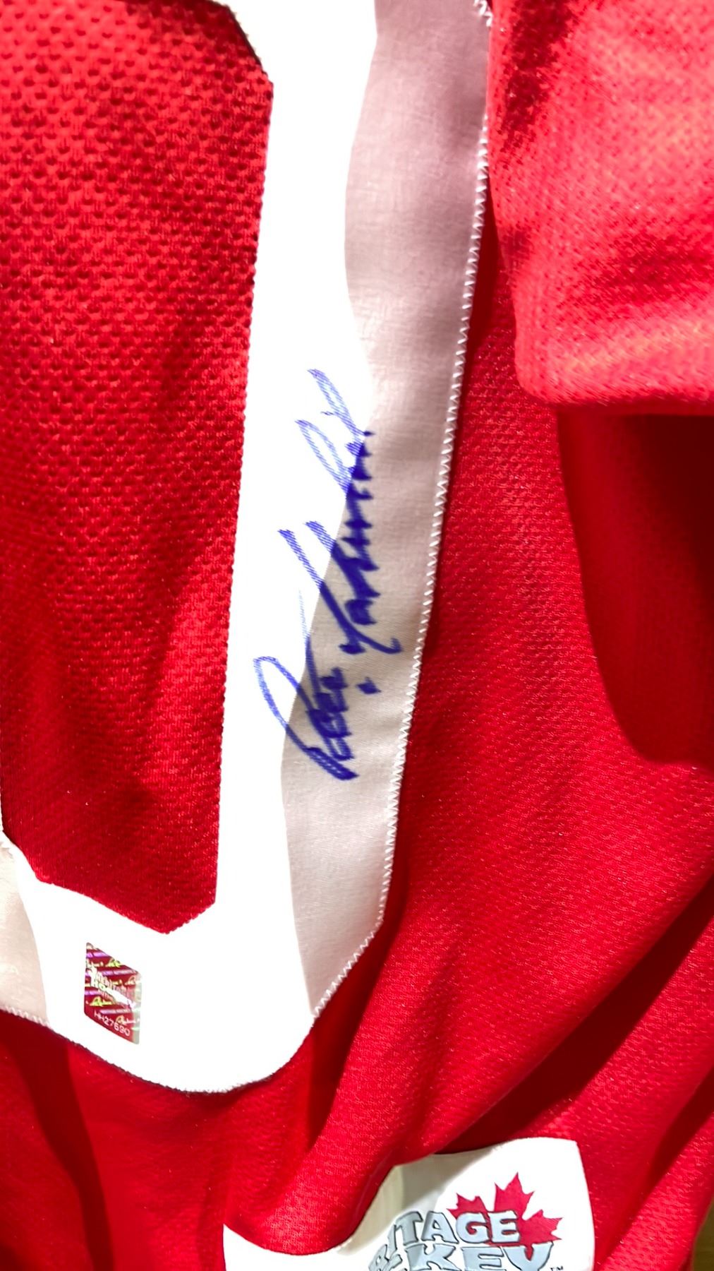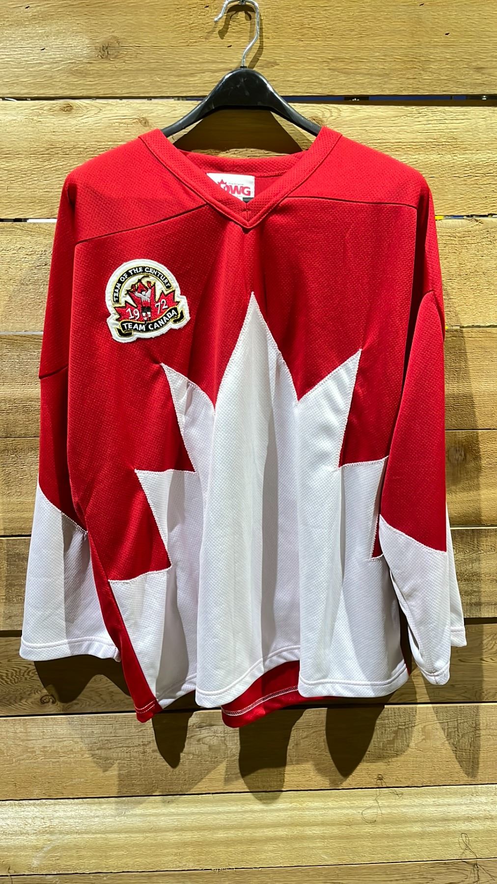 NEW DWG HERITAGE HOCKEY CLASSICS 1972 TEAM CANADA SIGNED BY PETER MAHOVLICH WITH COA SIZE XL JERSEY