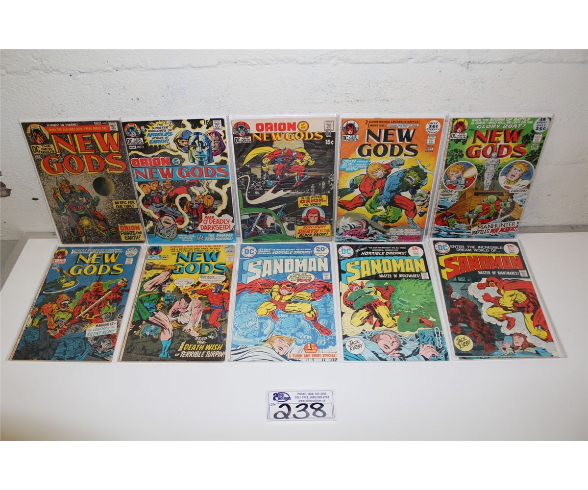 NEW GODS & SANDMAN RUNS (1971-75) JACK KIRBY 4TH WORLD CLASSIC SERIES. INCLUDES SANDMAN #1-5 COMPLETE SERIES & NEW GODS #1-3 & 5-8. 12 BOOKS TOTAL, MIXED GRADES WITH MANY SHARP, HIGHER GRADE COPIES. NICE LOT!