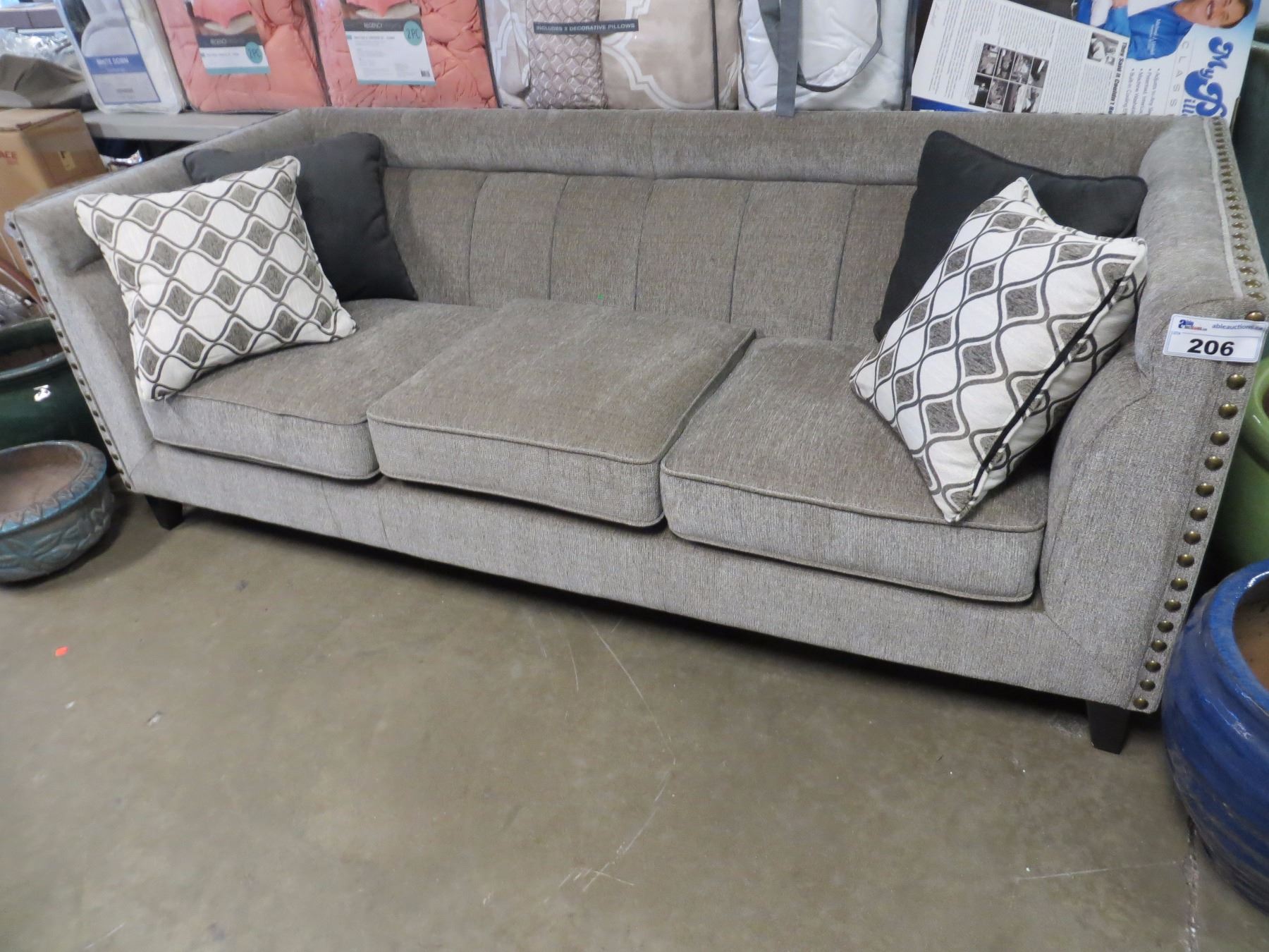 NEW GREY MODERN STUDDED SOFA WITH 4 THROW PILLOWS
