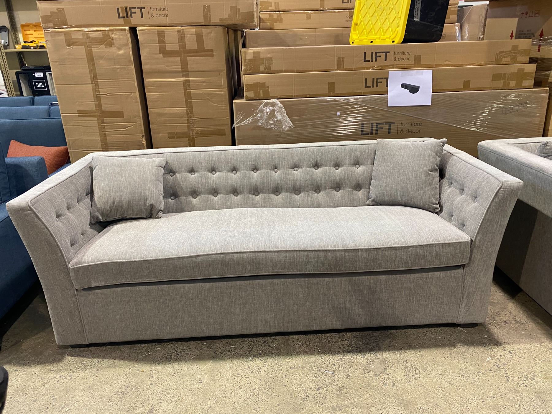 NEW GREY QUEEN SIZE PULL OUT SOFA WITH 2 MATCHING PILLOWS