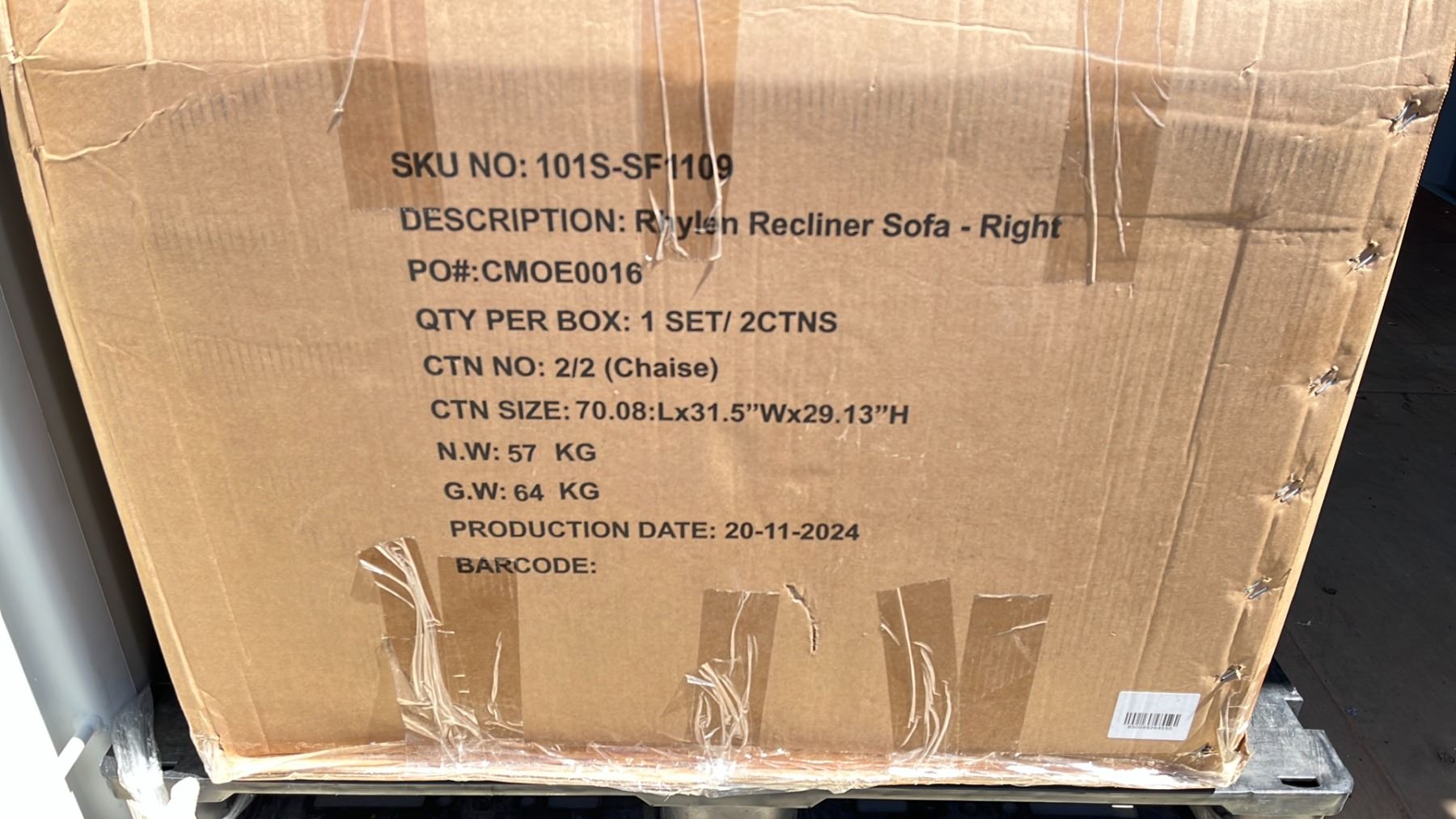 *NEW IN BOX* 101 STORIES COLLECTION RHYLEN RECLINER SOFA - RIGHT (2 BOXES)