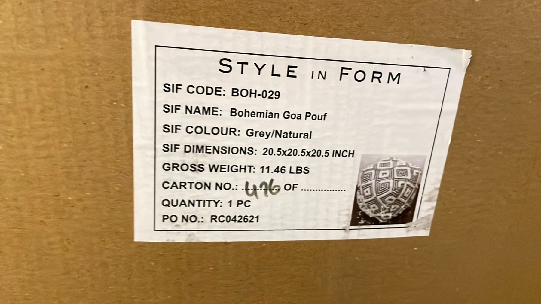 *NEW IN BOX* BARCELONA POUF - NATURAL STRIPE OTTOMAN