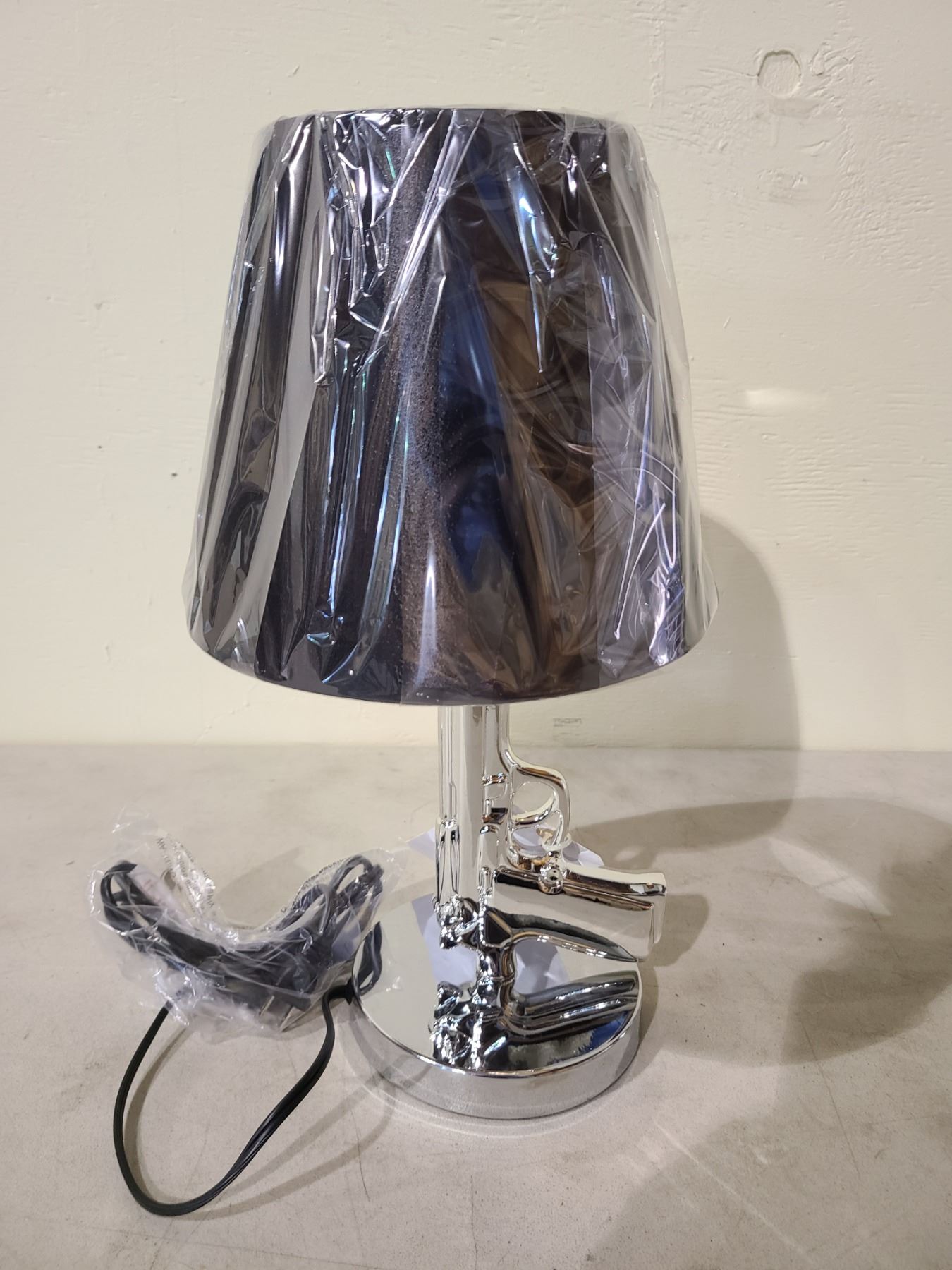 NEW IN BOX PISTOL TABLE LAMP 18" CHROME FINISH