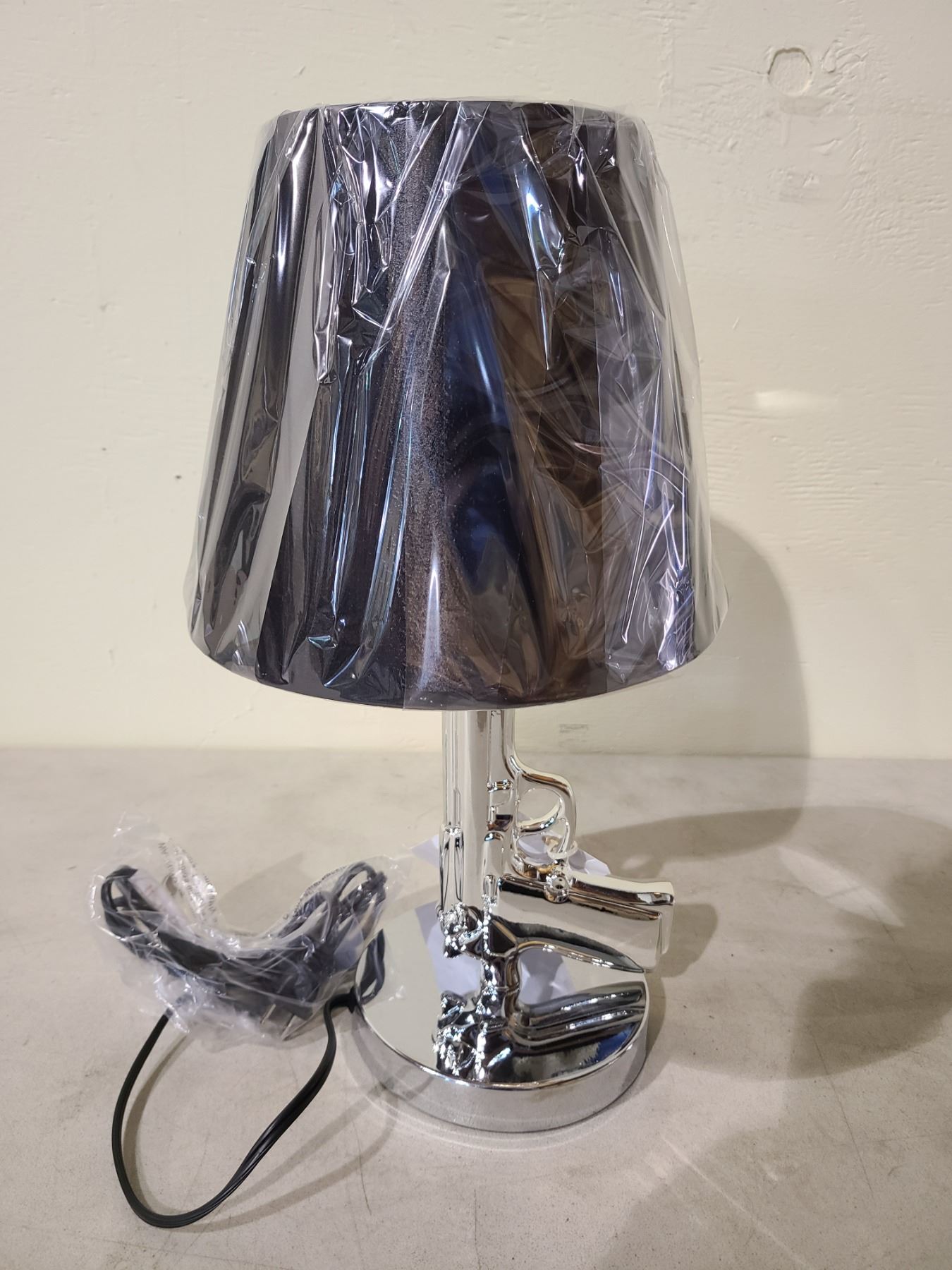 NEW IN BOX PISTOL TABLE LAMP 18" CHROME FINISH