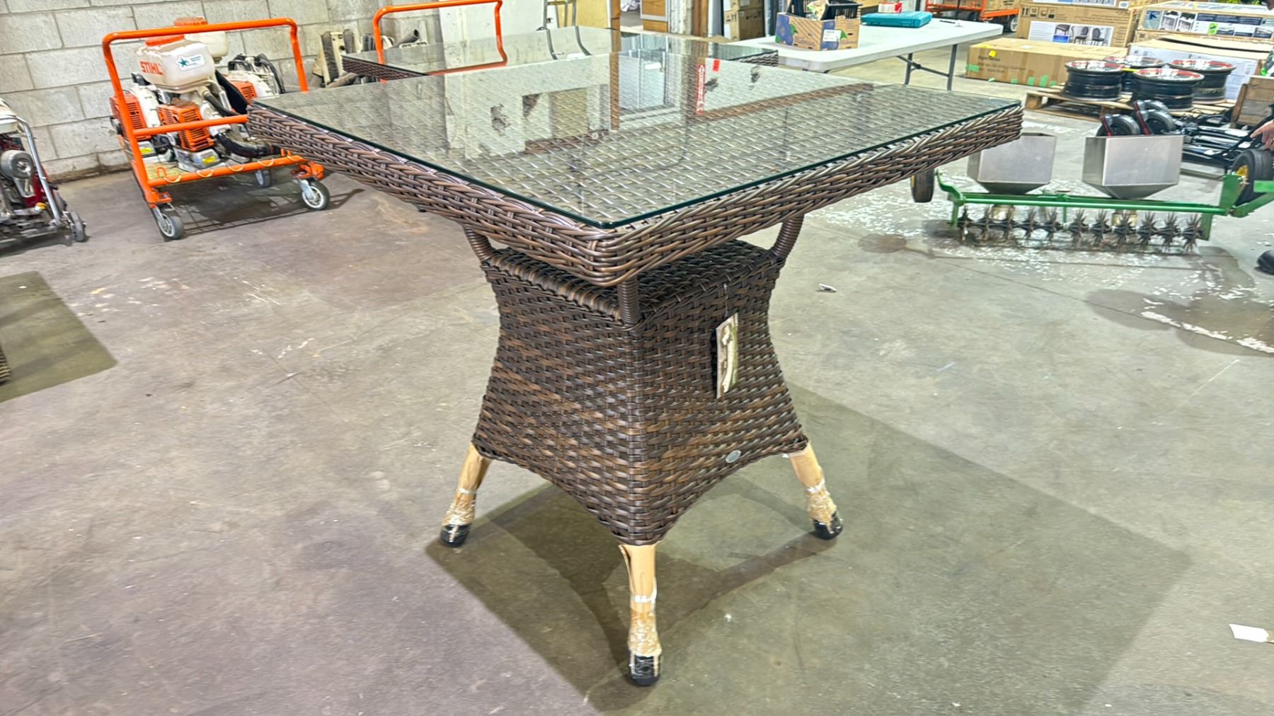 *NEW IN BOX* RATANA HAVANA CLUB 42" X 42" SQUARE GLASS TOP PATIO BAR TABLE