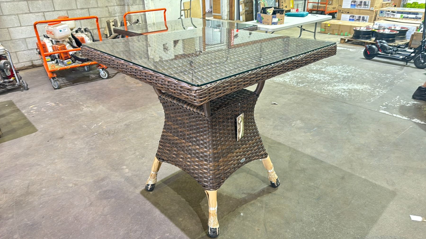 *NEW IN BOX* RATANA HAVANA CLUB 42" X 42" SQUARE GLASS TOP PATIO BAR TABLE