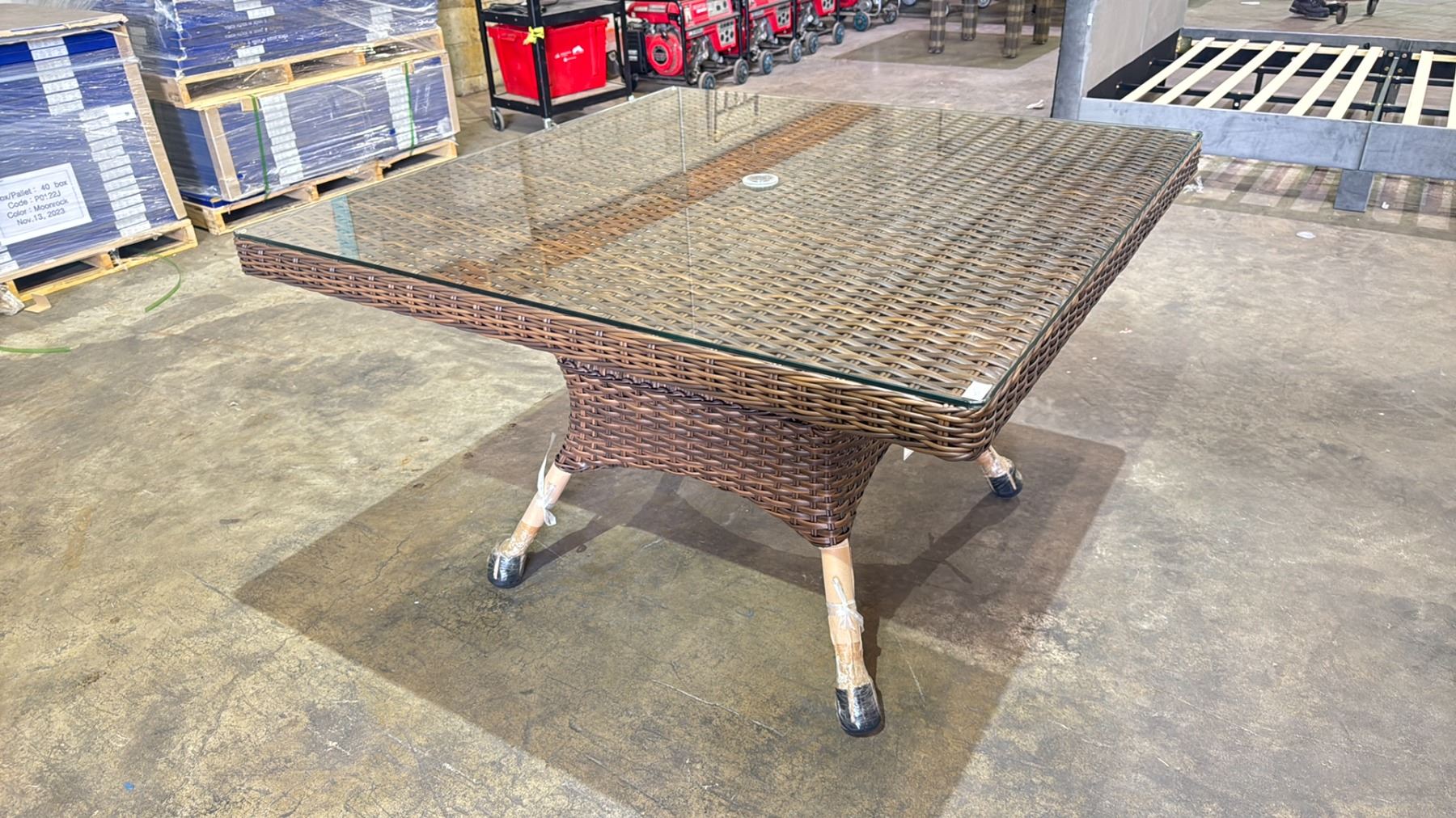 *NEW IN BOX* RATANA HAVANA CLUB 48" X 30" SQUARE GLASS TOP PATIO TABLE