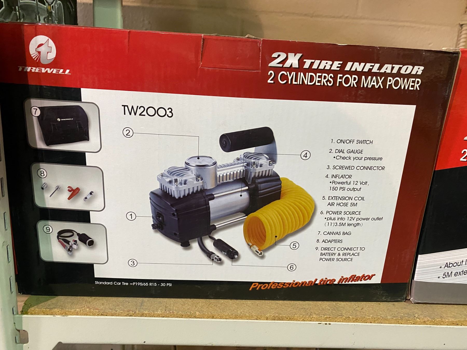 NEW IN BOX TIREWELL 2X TIRE INFLATOR 2 CYLINDERS FOR MAX POWER 5M AIR HOSE COIL