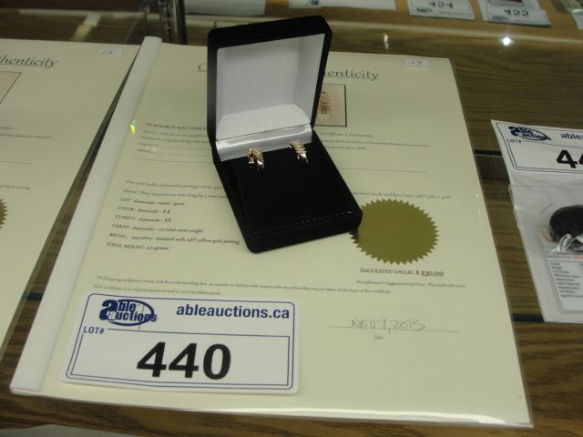 NEW LADIES DIAMOND 1/2 HOOP EARRINGS. INCLUDES $230 CERTIFICATE