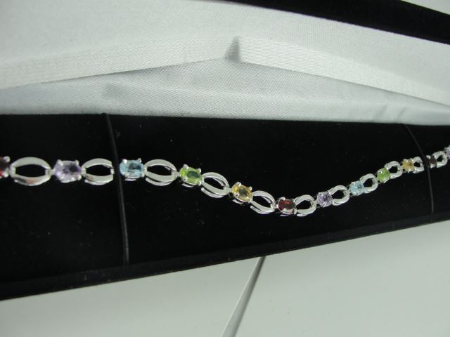 NEW LADIES STERLING SILVER MULTI GEMSTONE BRACELET - 12 OVAL ASSORTED GENUINE GEMSTONES