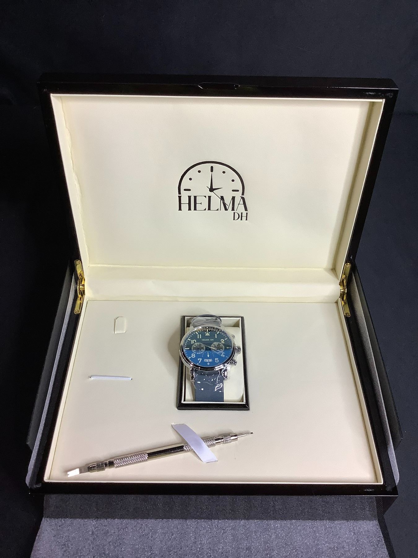 NEW MEN'S HELMA DH CHRONOGRAPH MASTER PILOT WATCH, MODEL DH007 MULTI-FUNCTION MOVEMENT WITH DATE, GENUINE LEATHER STRAP
