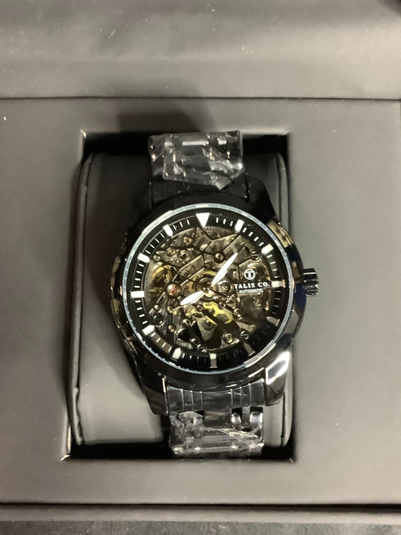 *NEW* MEN'S TALIS CO 7820 AUTOMATIC WATCH STAINLESS STEEL STRAP GLASS BACKCASE