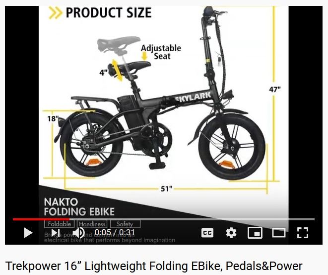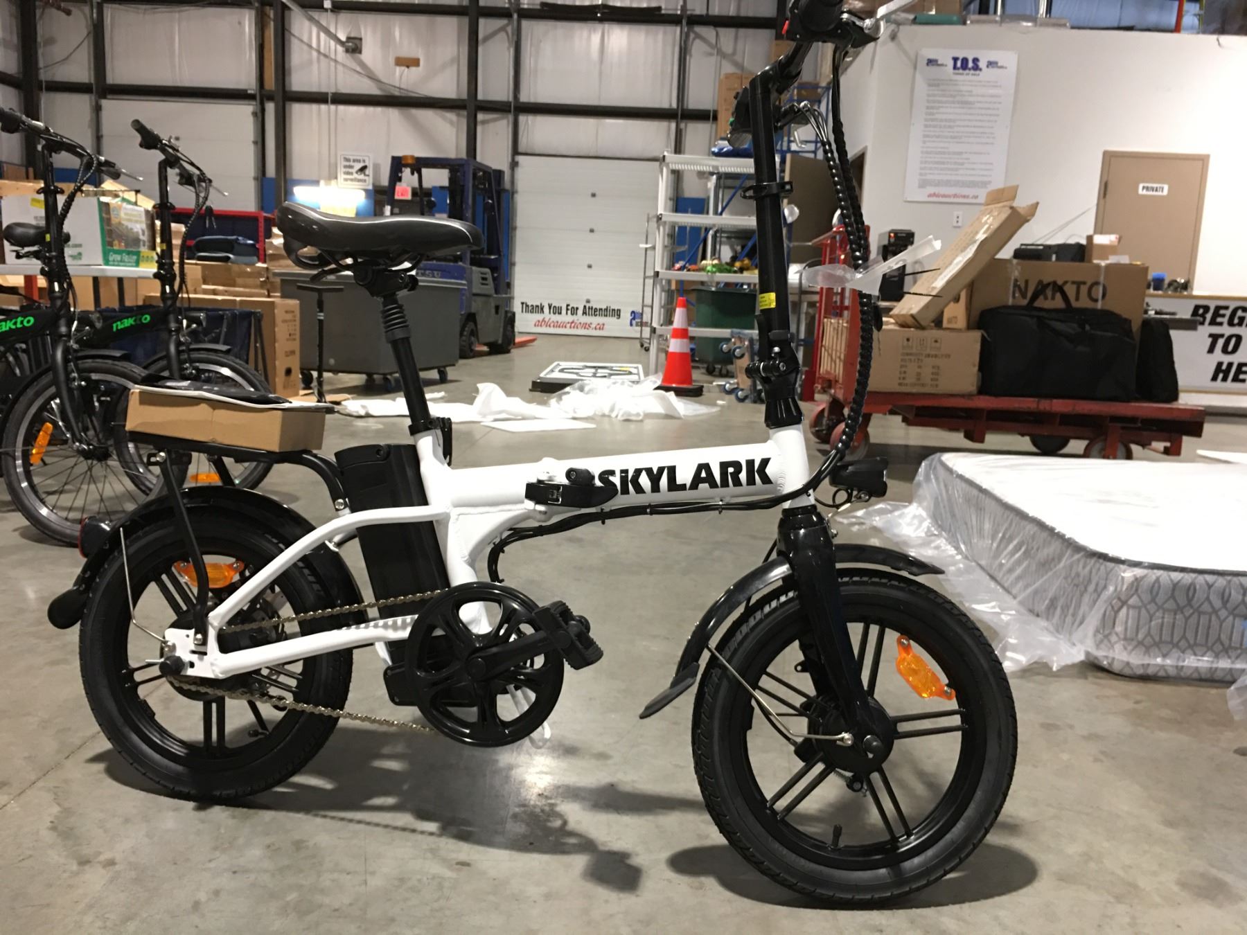 NEW NAKTO SKYLARK FOLDING E-BIKE, WHITE, 16" ALLOY WHEELS, LIGHT-WEIGHT ALUMINUM CONSTRUCTION, 250W MOTOR, 36V LITHIUM ION BATTERY & 10AH - 1-YEAR WARRANTY