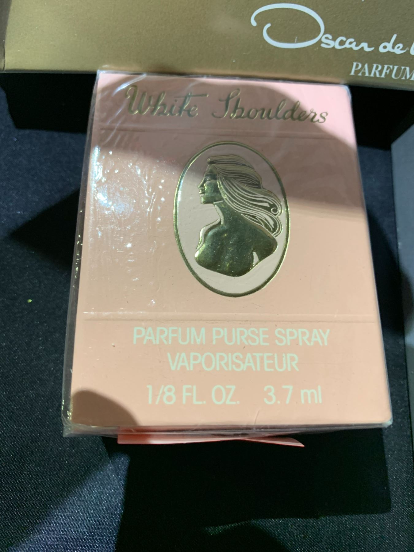 *NEW* OSCAR DE LA RENTA 4PC GIFT BOX, *NEW* WHITE SHOULDERS PARFUM PURSE SPRAY & MIKASA CRYSTAL JEWELRY