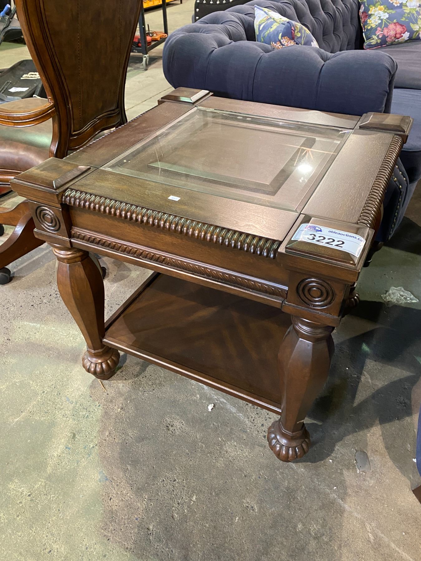 NEW OUT OF BOX GLASS TOP END TABLE 25 X 26 X 26"