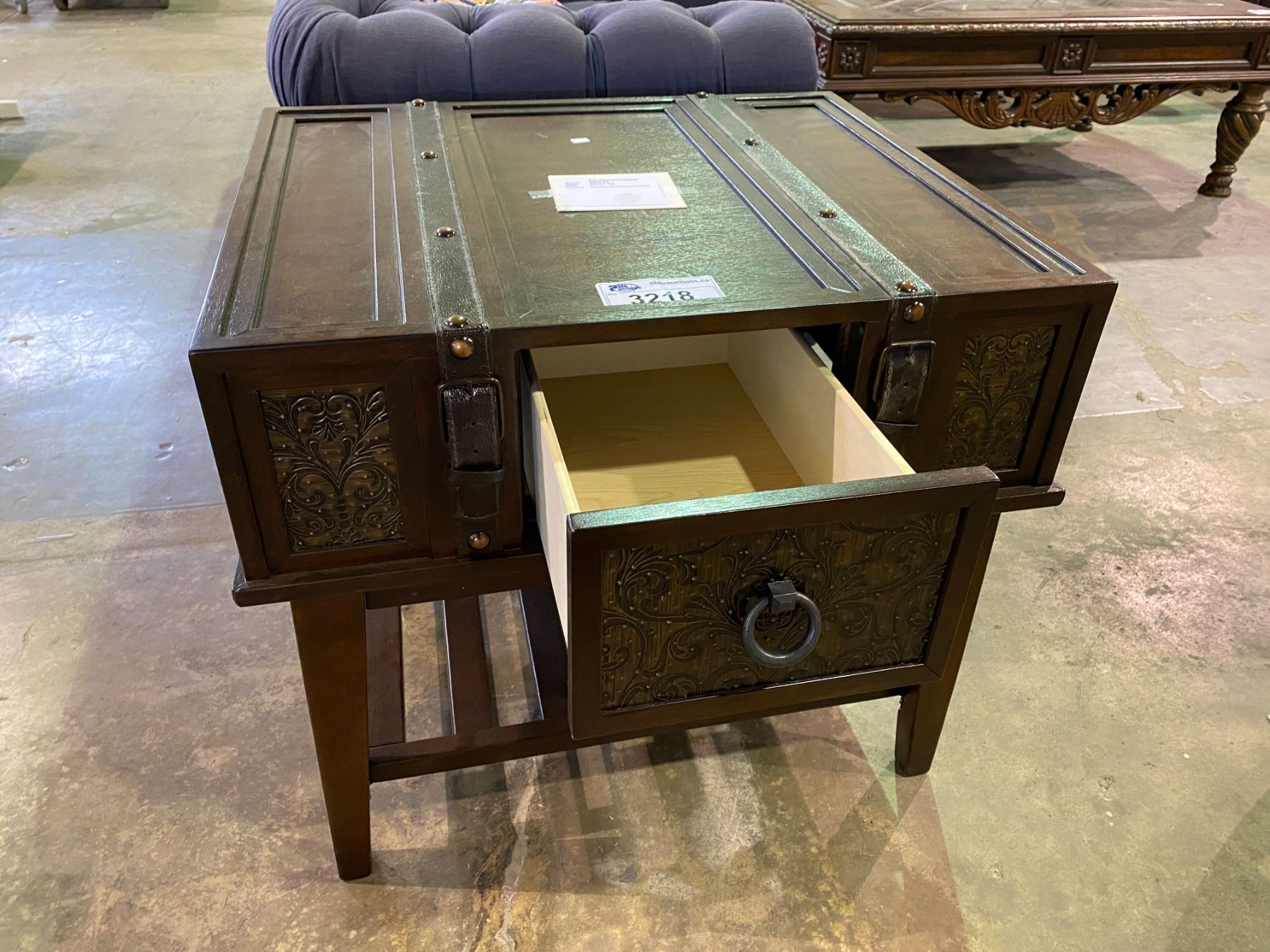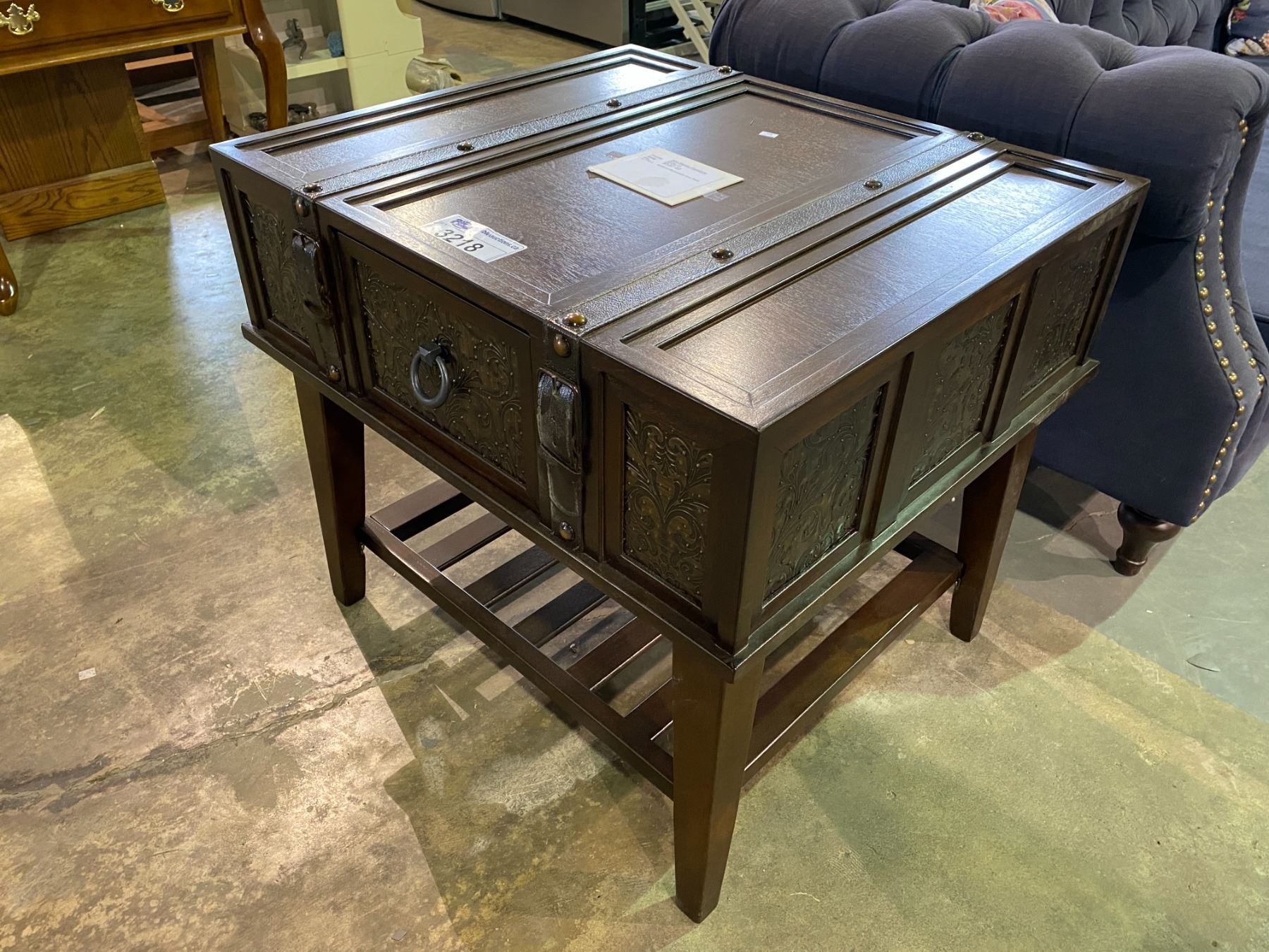 NEW OUT OF BOX SINGLE DRAWER TRUNK STYLE MCKENNA END TABLE 25 X 26 X 29"