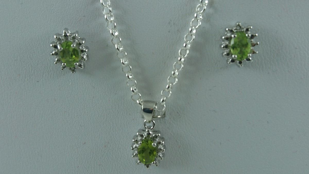NEW PERIDOT + DIAMOND EARRING AND NECKLACE SET. 1.50CT OVAL CUT INCLUDES $400 CERTIFICATE