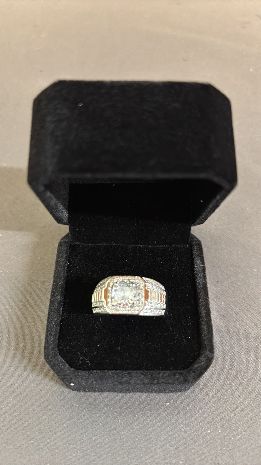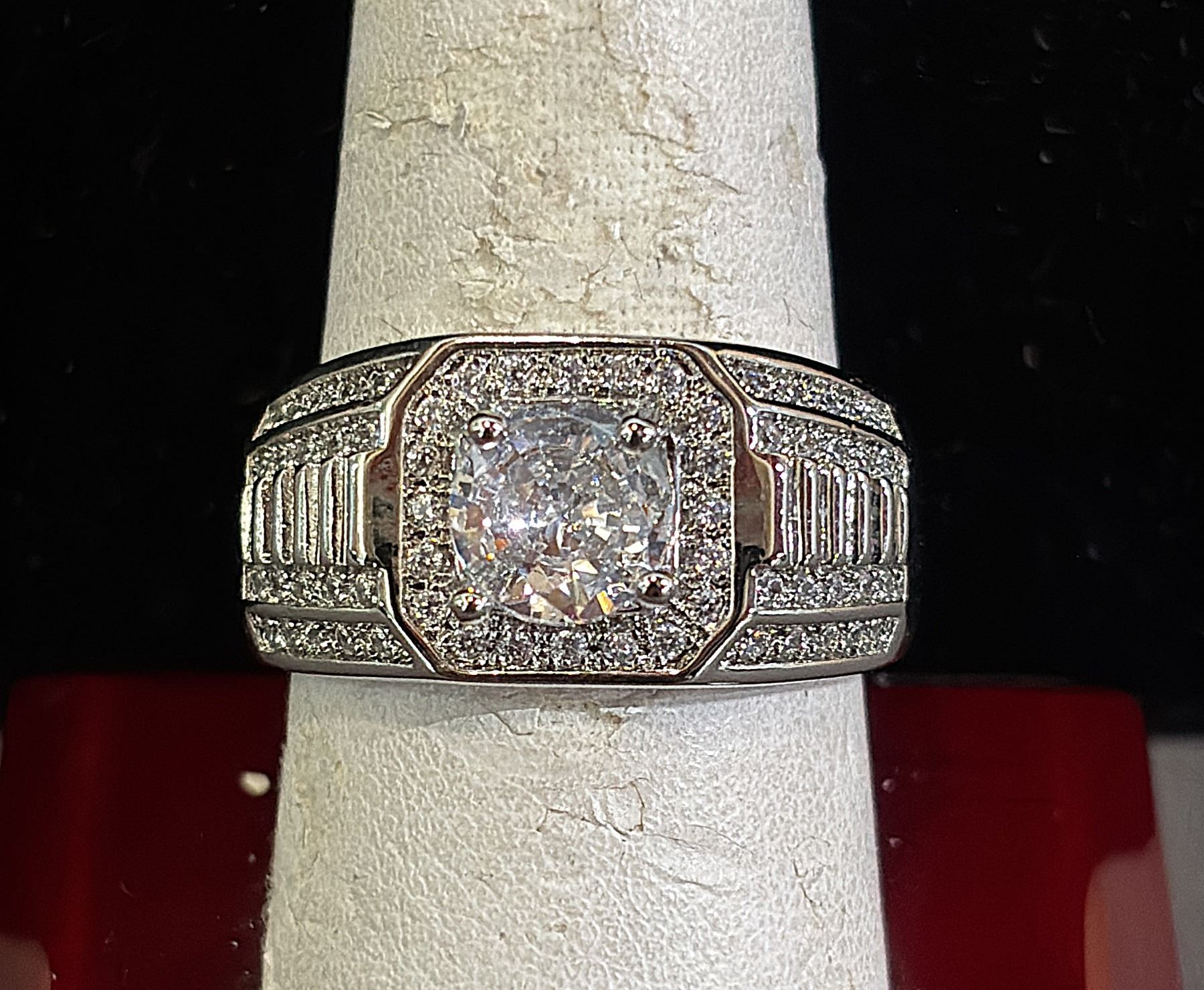 *NEW* PLATINUM PLATED 1CT SIMULATED DIAMOND (CZ) MAN'S RING - RESIZEABLE