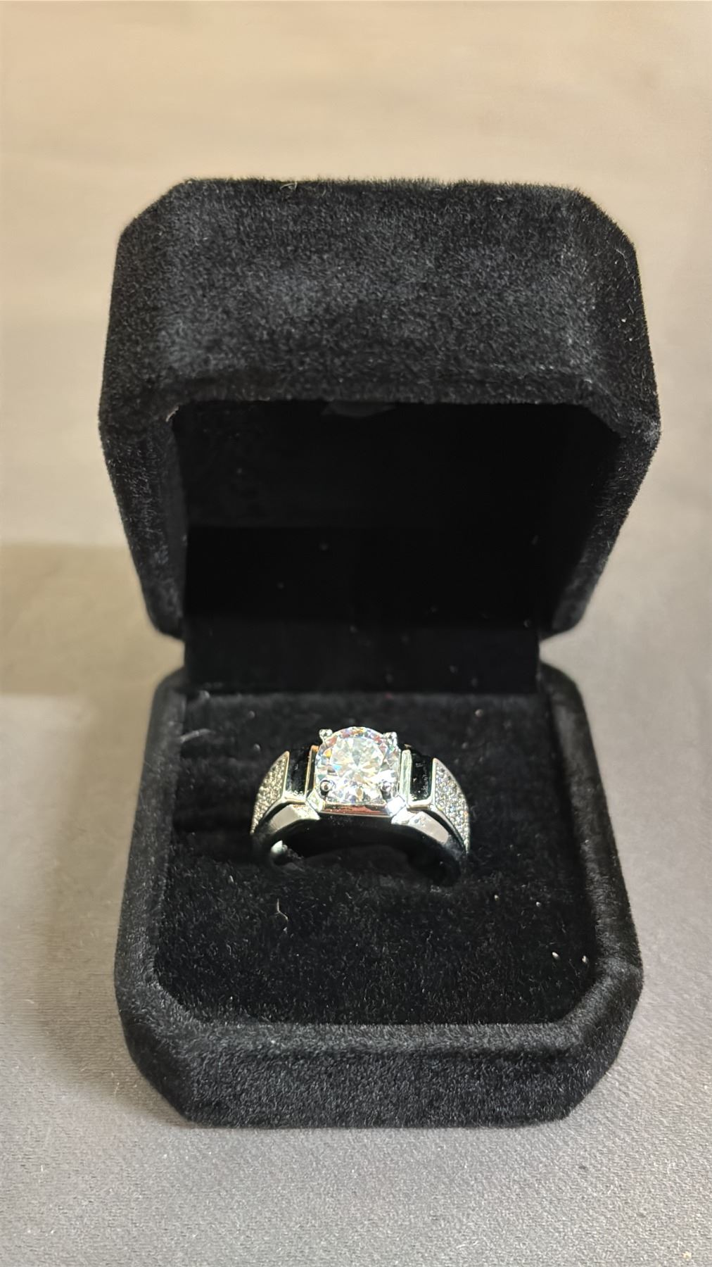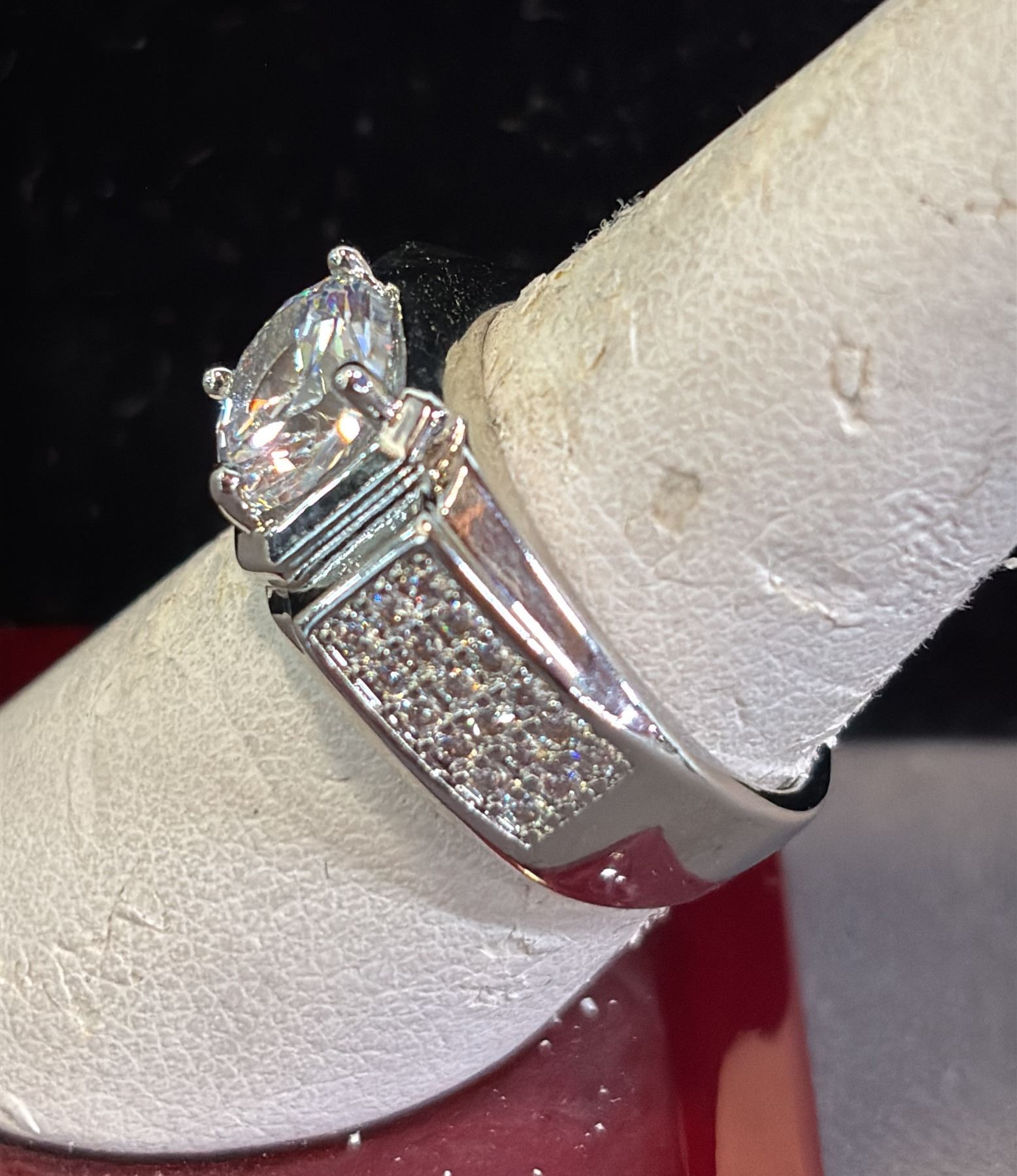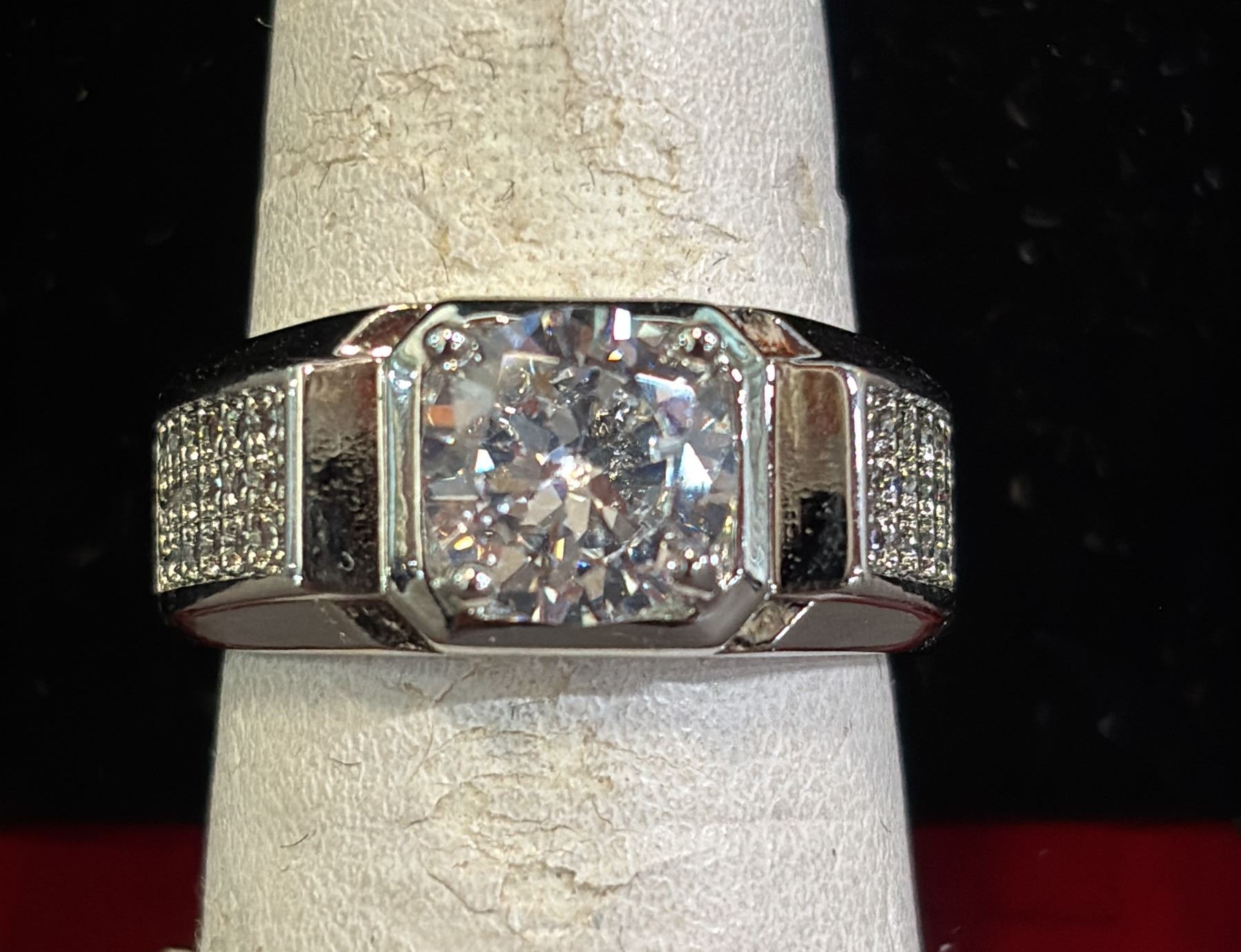 *NEW* PLATINUM PLATED 2 CT SIMULATED DIAMOND (CZ) MAN'S RING: RESIZABLE