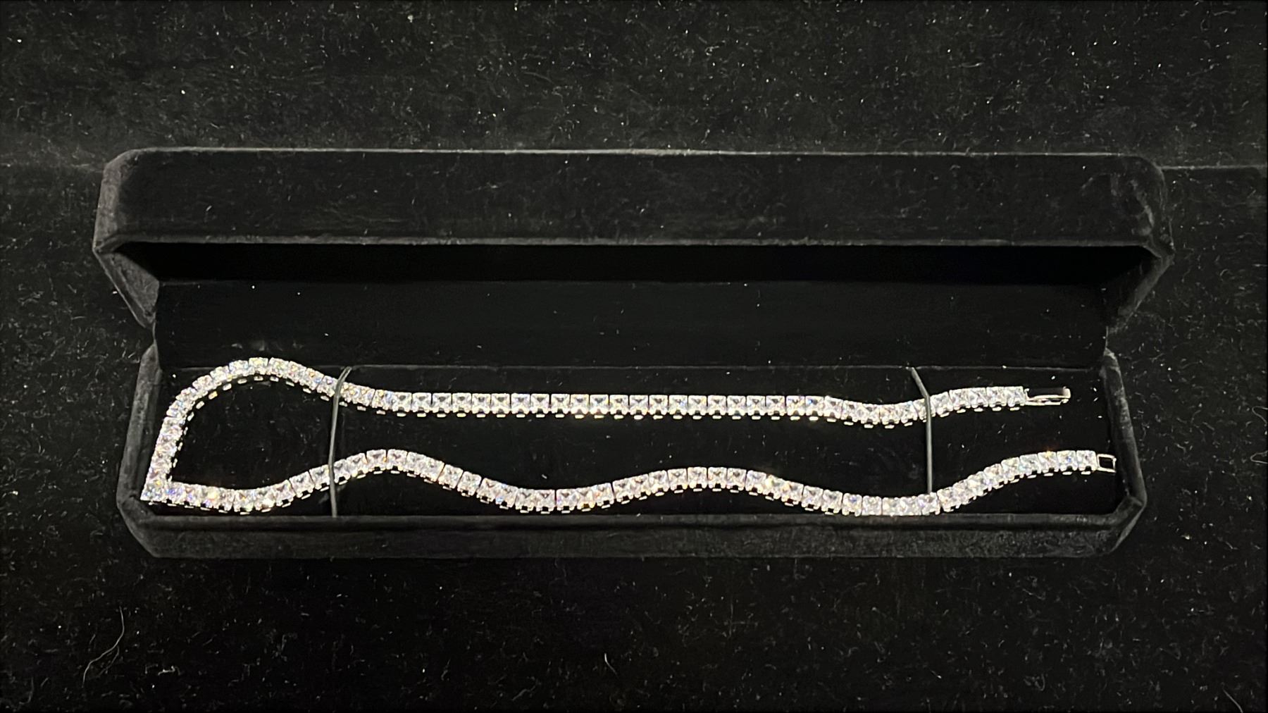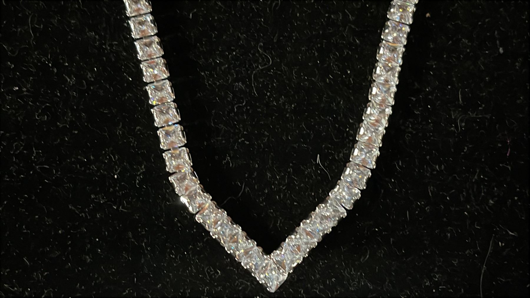 NEW PLATINUM PLATED 4 MM PRINCESS CUT SIMULATED DIAMOND (CZ) TENNIS NECKLACE