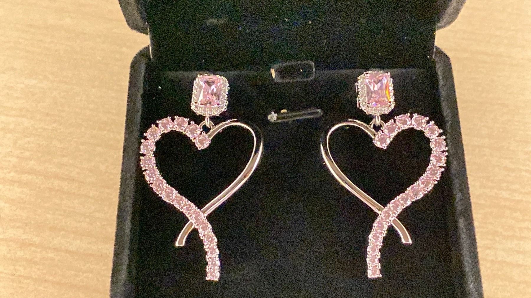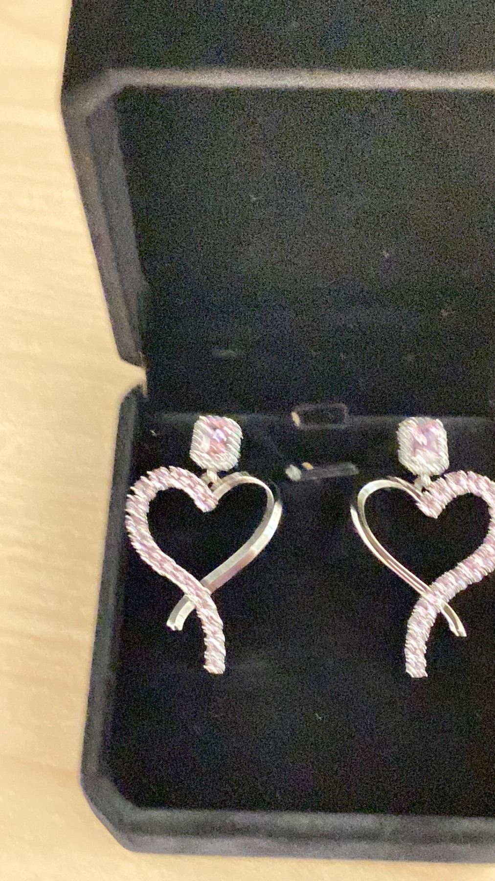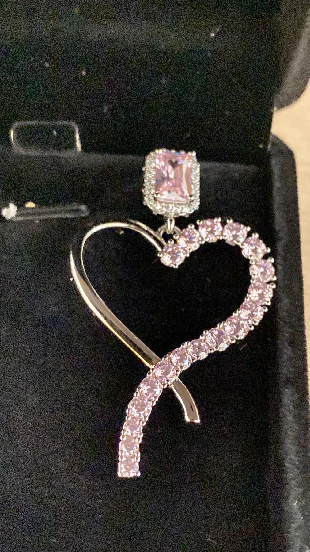 NEW PLATINUM PLATED 44.0MM PINK SIMULATED DIAMOND (CZ) HEART DANGLE EARRINGS