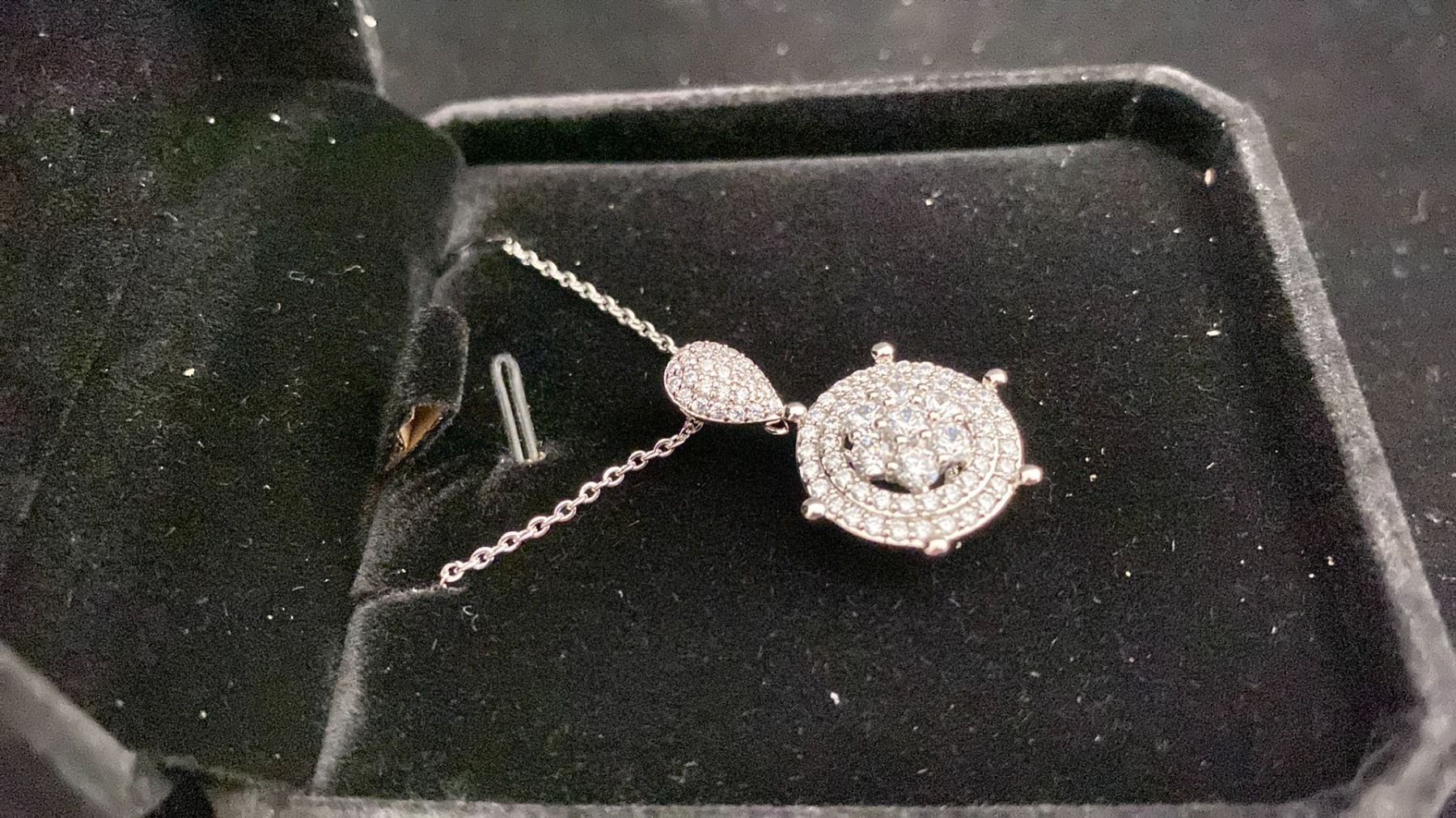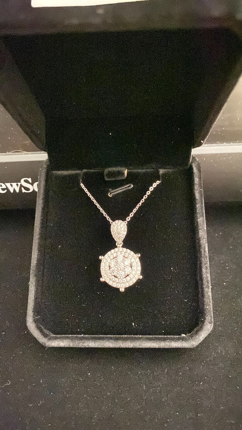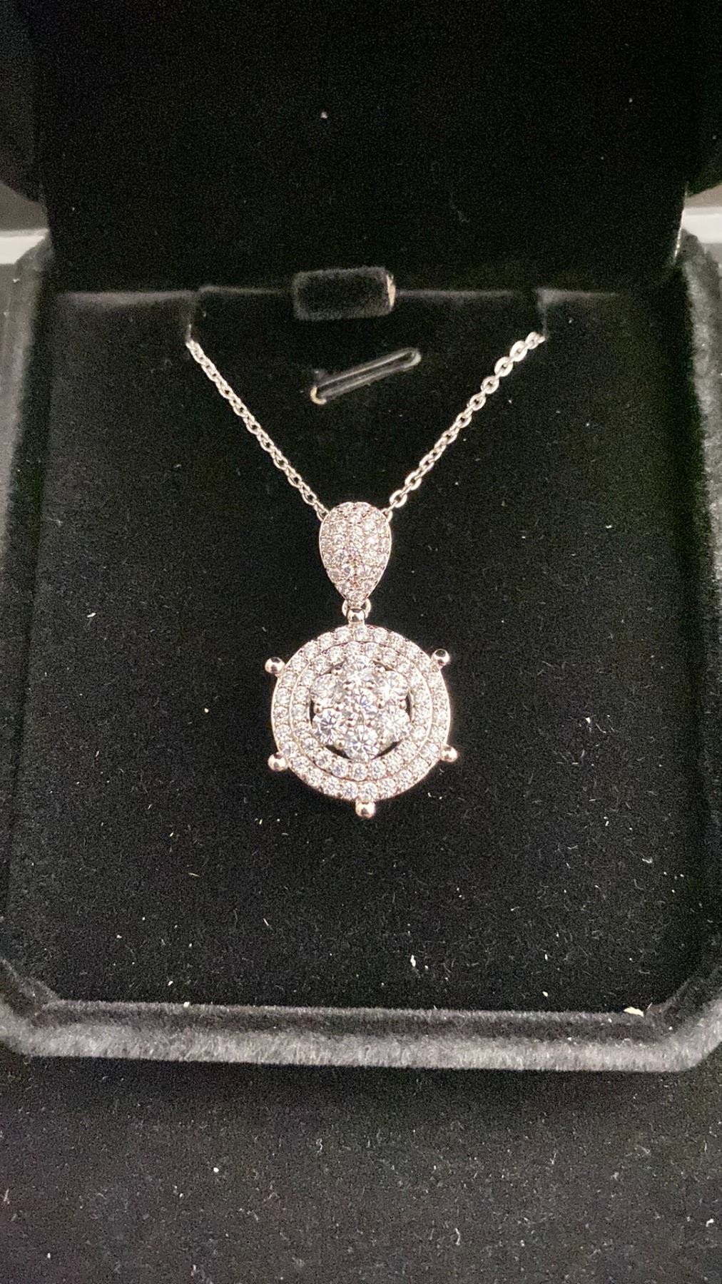 NEW PLATINUM PLATED SIMULATED DIAMOND CLUSTER NECKLACE, ADJUSTABLE CHAIN 15" - 17" LONG