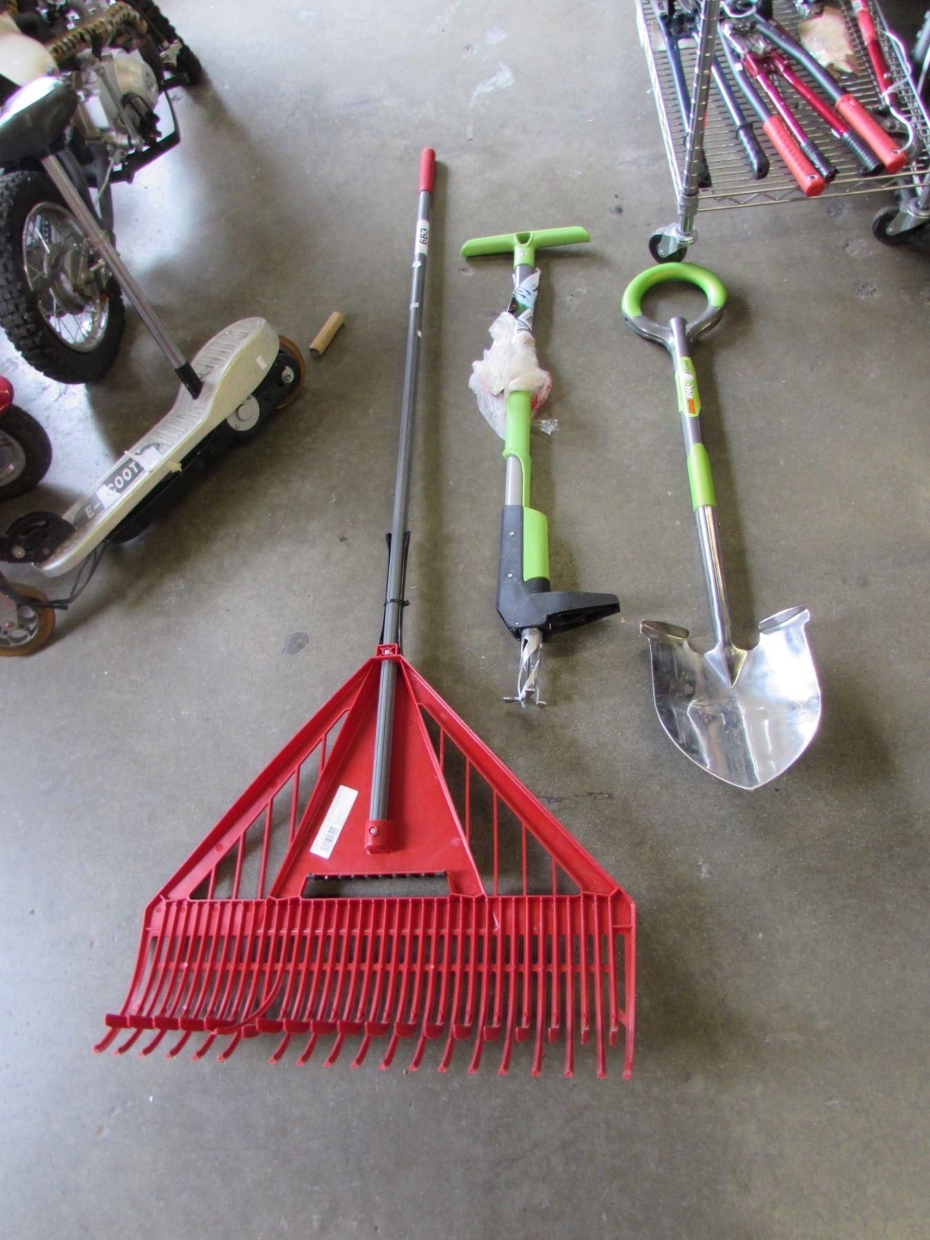 NEW PROLITE SPADE SHOVEL, GARANT REMOVABLE SHRUB RAKE & GARANT WEEDER